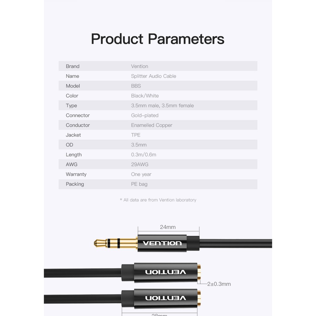 Vention Headphone Splitter Audio Stereo Y-Extension Cable Male To Female Dual Aux Jack Adapter 3.5Mm