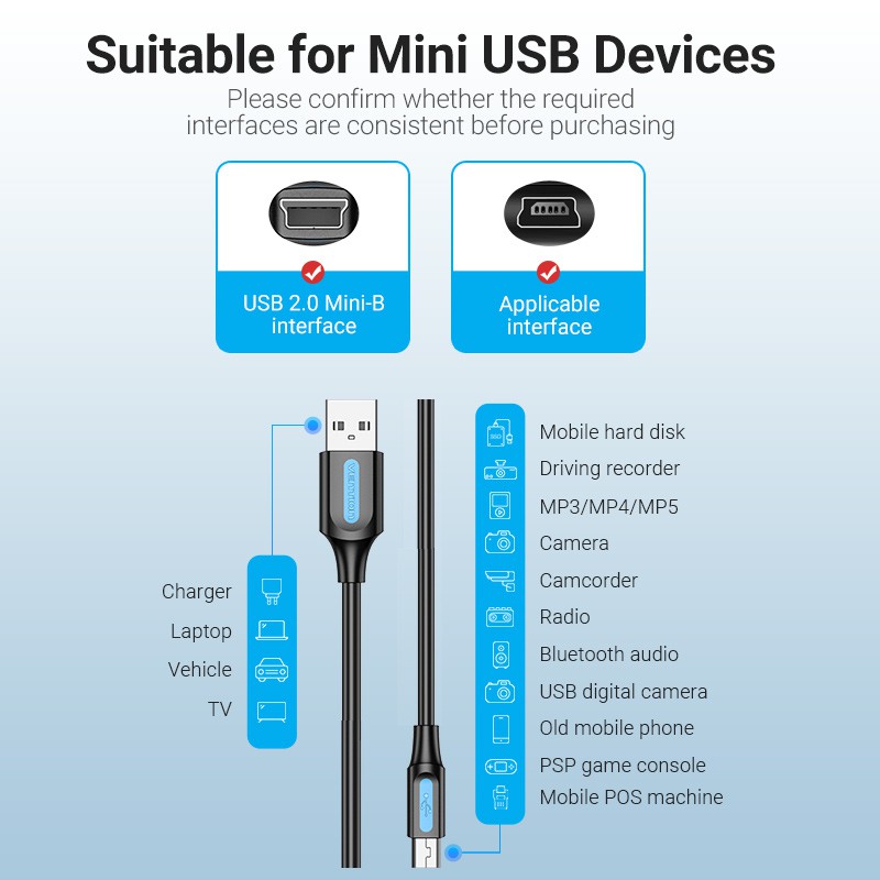 Vention Mini USB Cable USB 2.0 Mini USB to USB 2A 480 Mbps USB Data Cable for Camera MP3 MP4