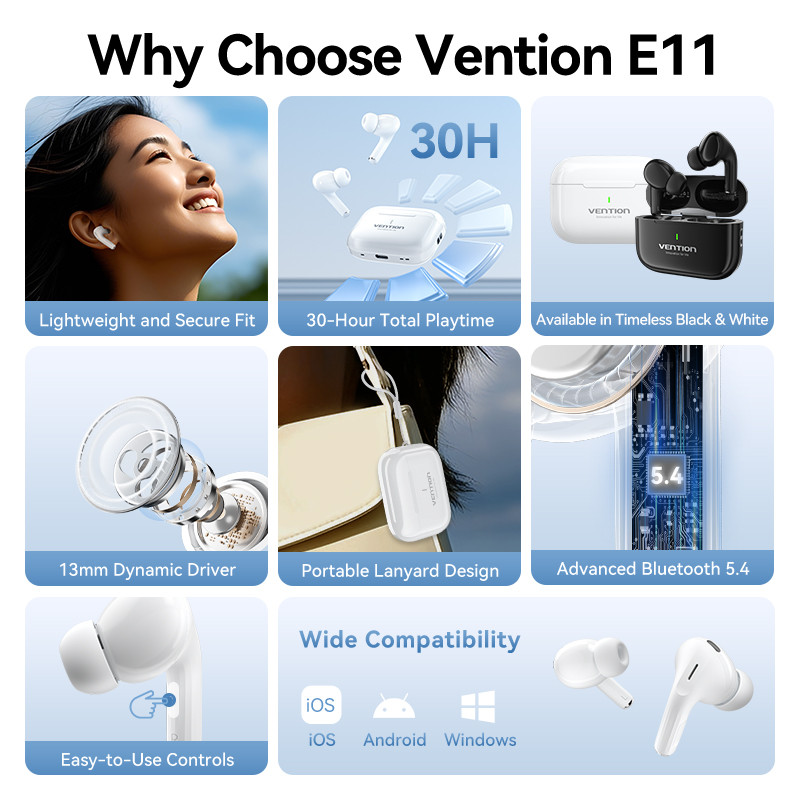 Vention True Wireless Bluetooth Earphone Upgraded Earphone Bluetooth 5.1 Long Stable Transmission Waterproof Wireless Earphone Support Mono/Dual Modes