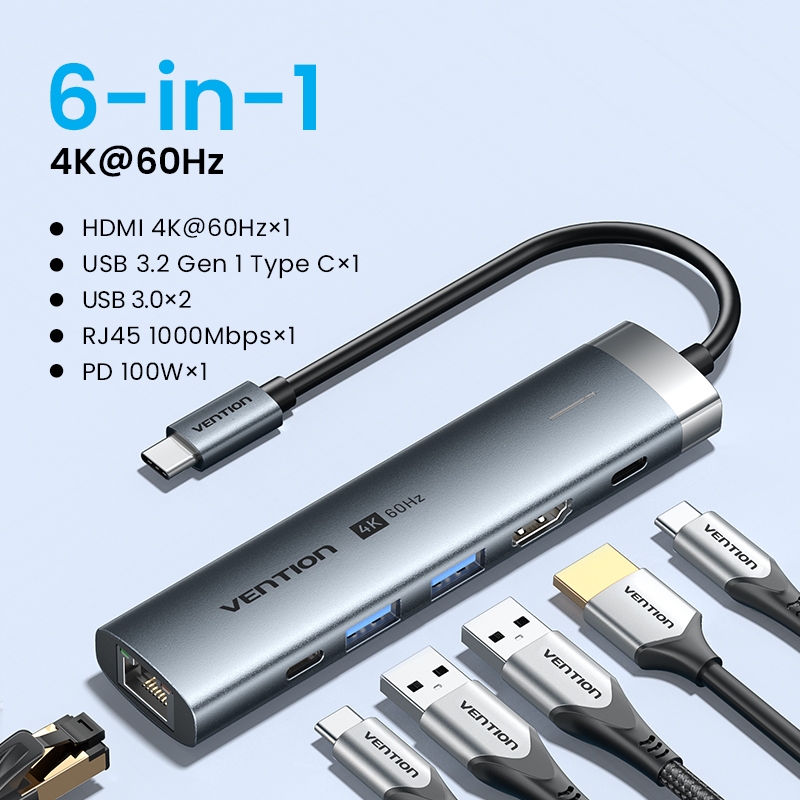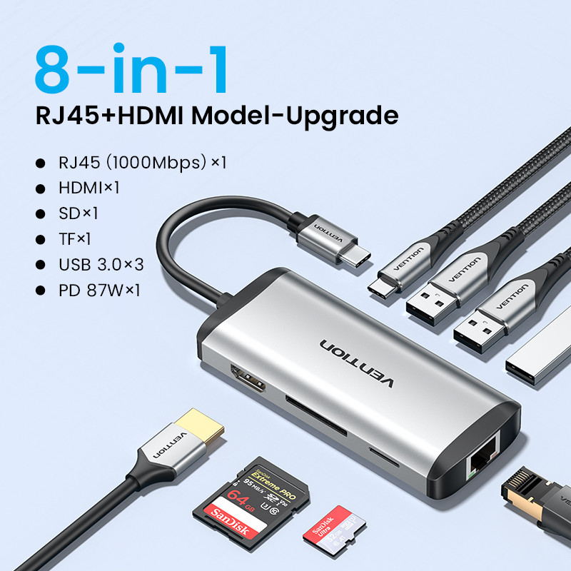 Vention USB C Hub 9 In 1 Type C To HDMI With Audio Port 5Gbps RJ45 USB 3.0 3.5mm SD TF Cards Reader PD 100W Power 4K 60hz HDMI Docking Station for Laptop PC Macbook