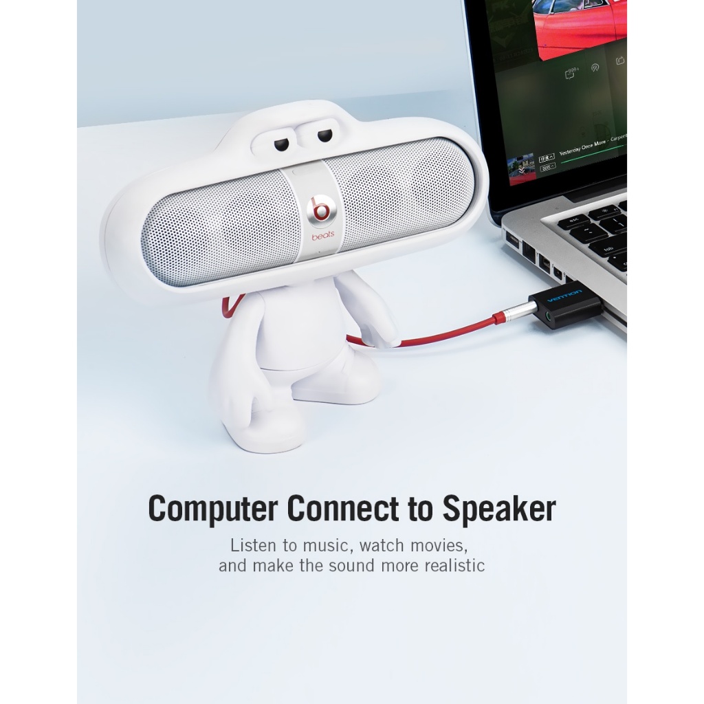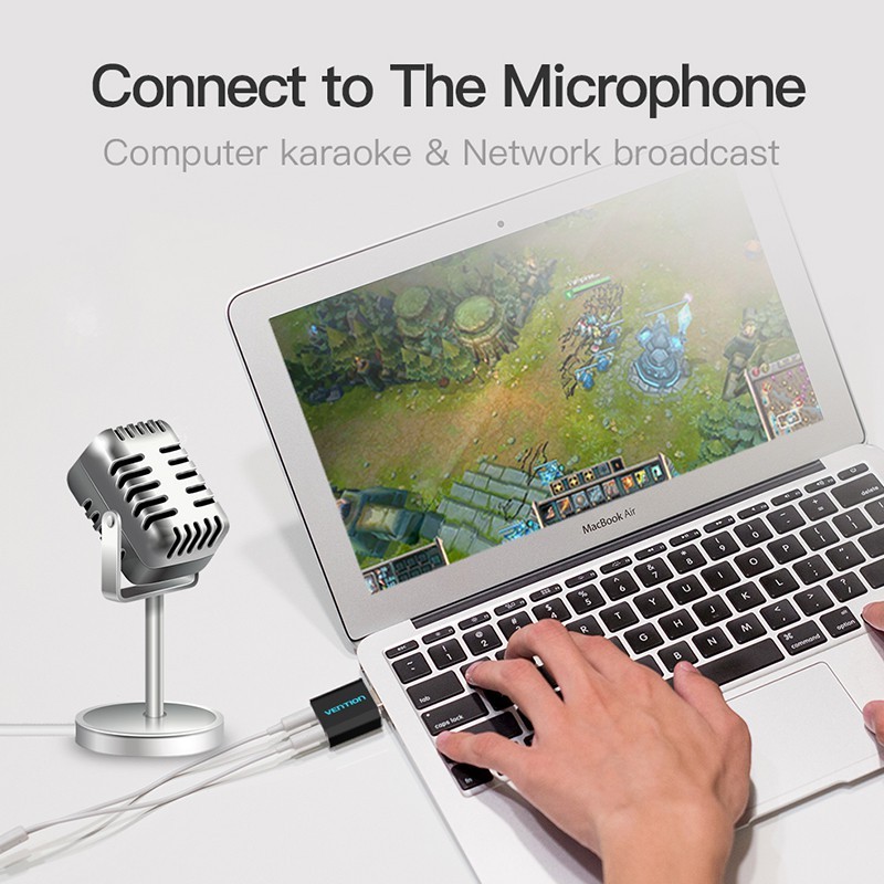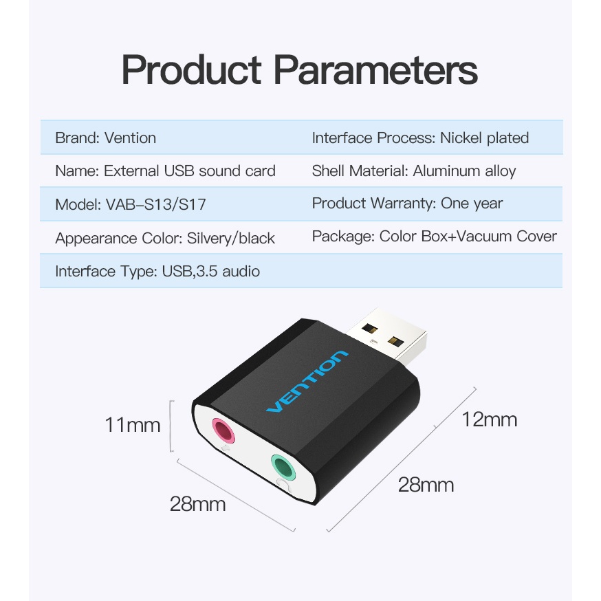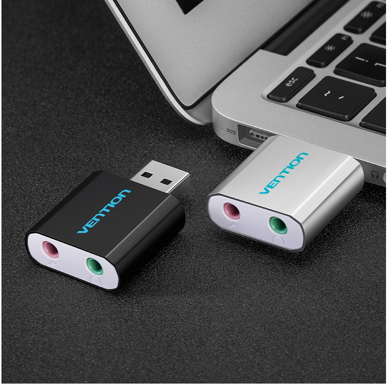 Vention VAB-S17-B External Usb Aux Mic Adapter Stereo Audio Sound Card 3.5Mm For Pc Laptop