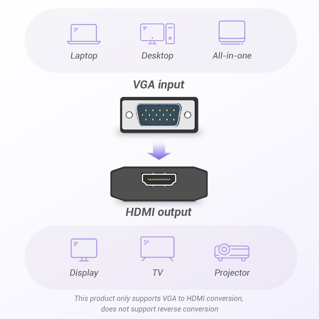 Vention VGA to HDMI Adapter 1080P 60Hz for Projector Monitor PC Laptop