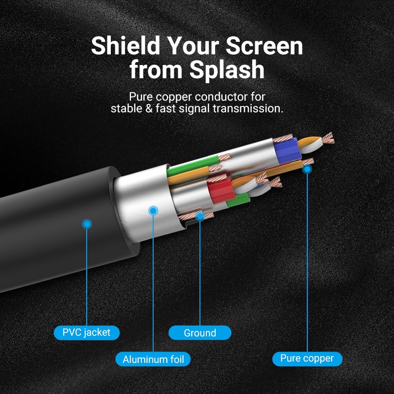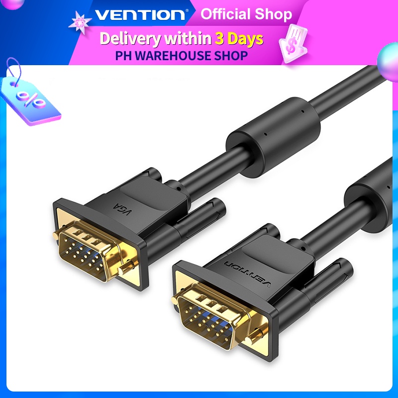 Vention Vga Cable 3+6 Gold Plated Dual Ferrite Cores 1080P For Projector Tv Monitor