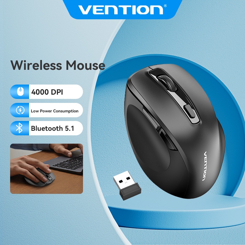 Vention Wireless Mouse with 2.4G USB Receiver 3 Button 1200 DPI for MacBook Laptop Desktop