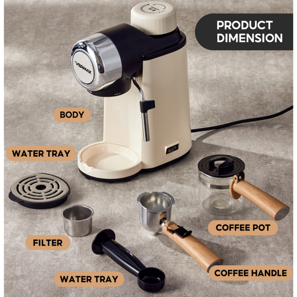 Vermax Espresso Coffee Machine Maker Machine Potable Coffee Maker Coffee Grinder Milk Foamer for