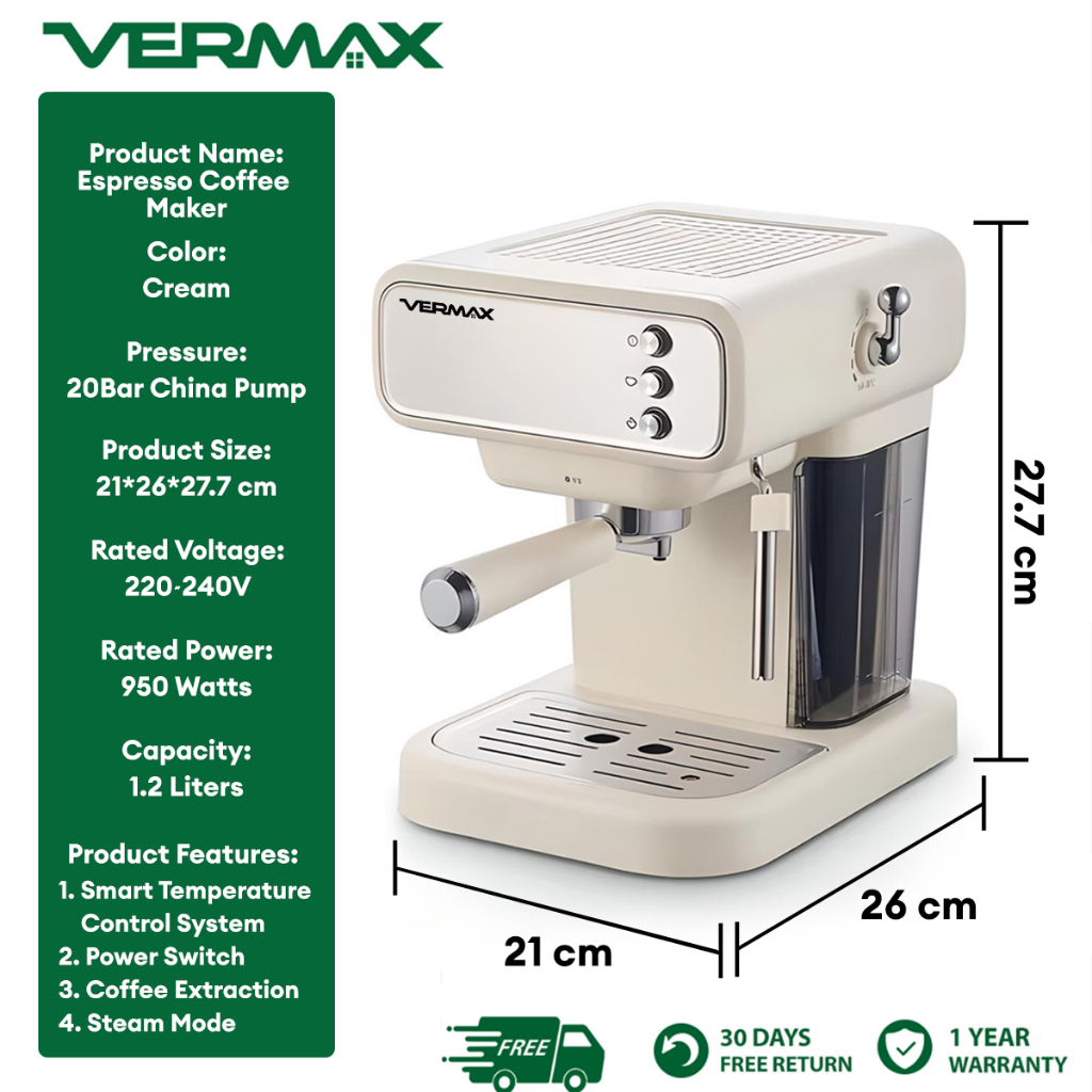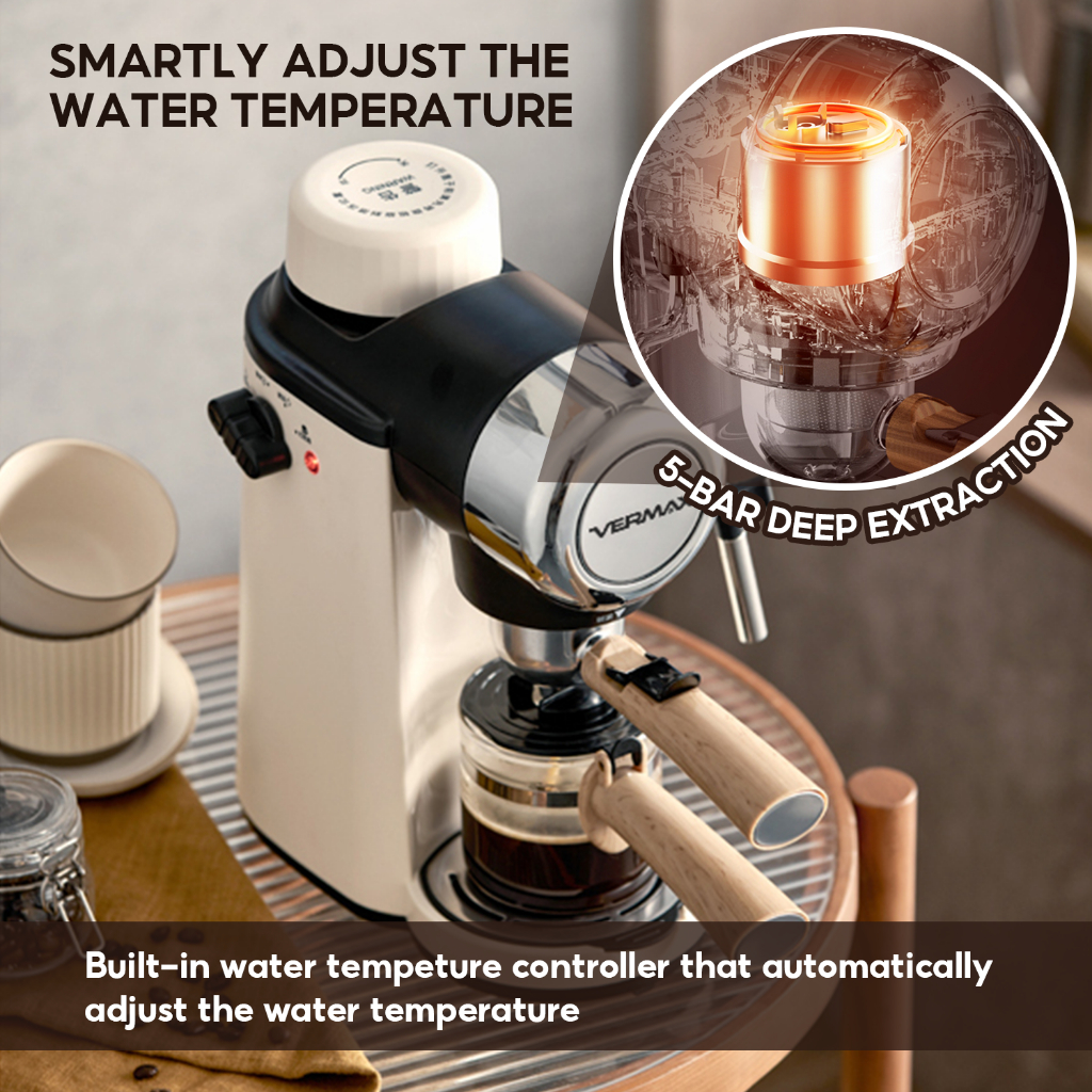 Vermax Mini Espresso Machine 5Bar Potable Coffee Maker Temperature controll Coffee Machine 5 Cups