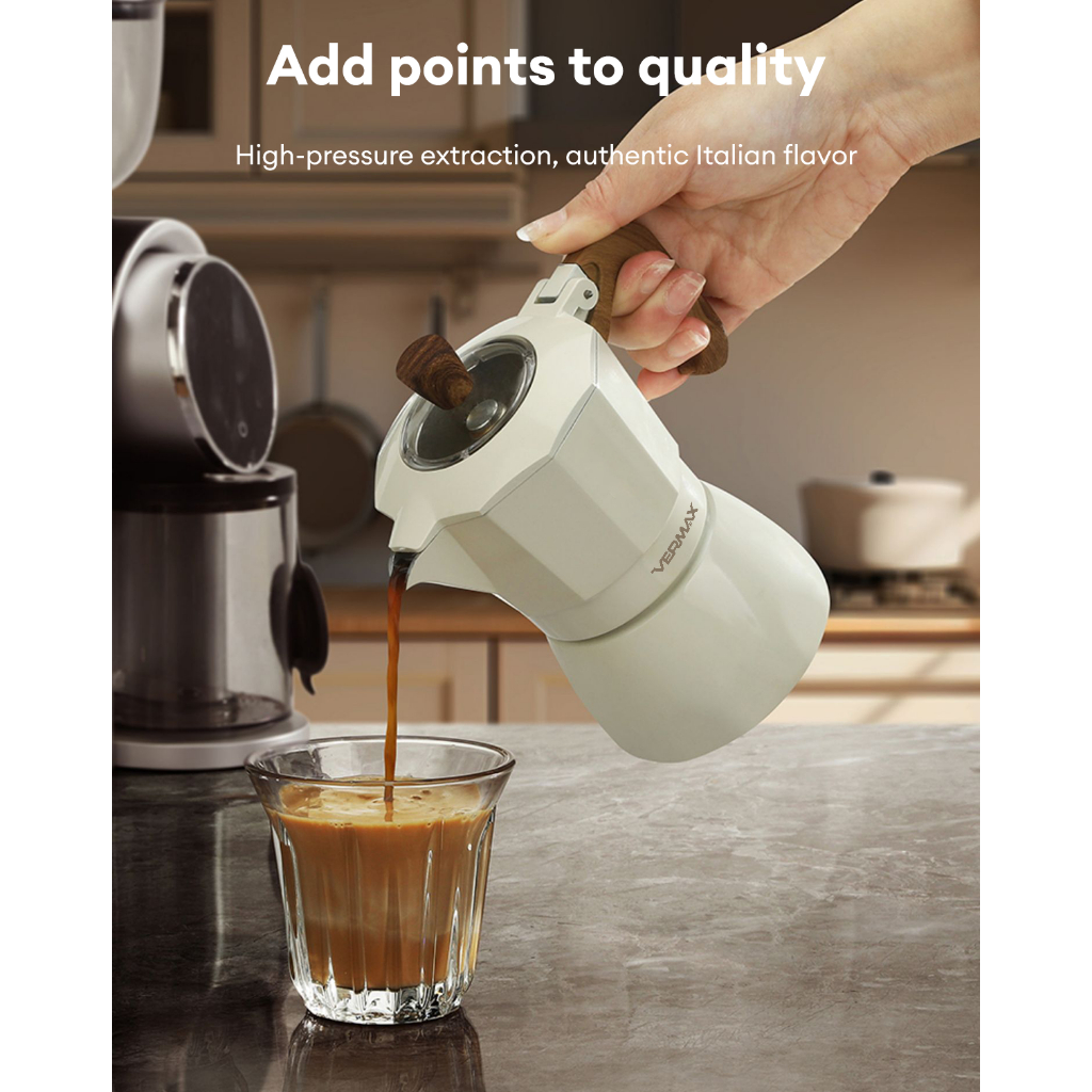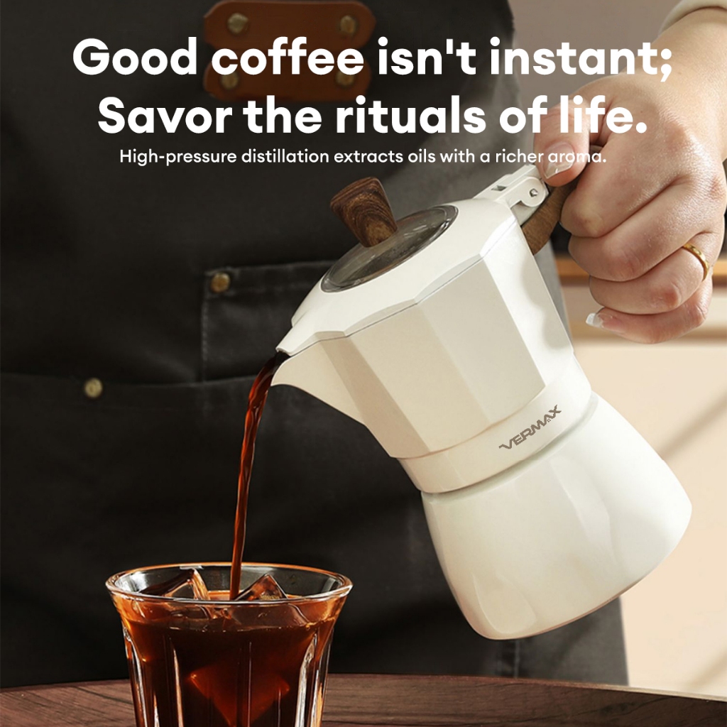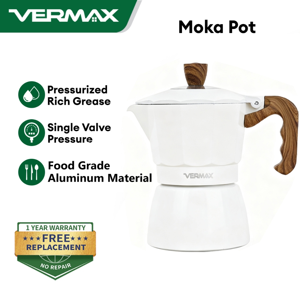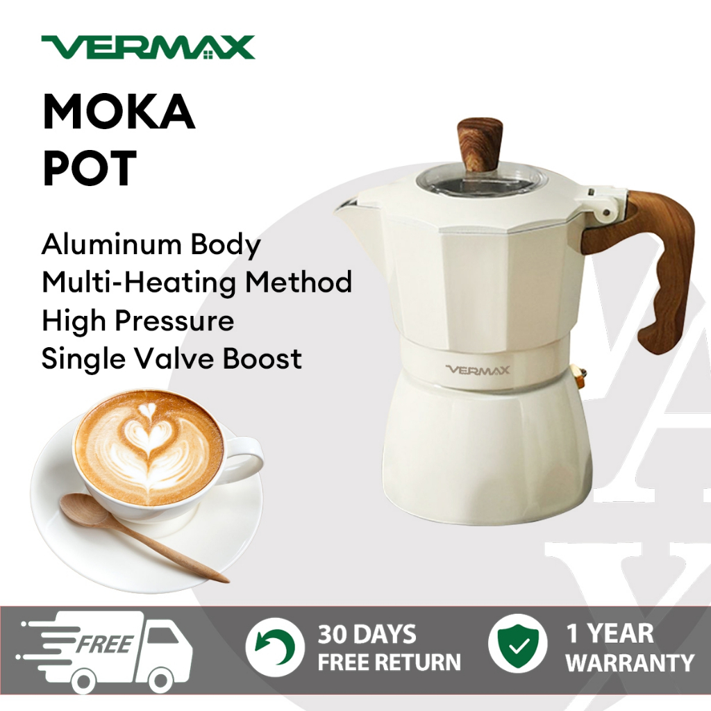 Vermax Moka Pot Coffee Maker Aluminum Food Grade High-Pressure Extraction Italian EspressoMoka 2Cups