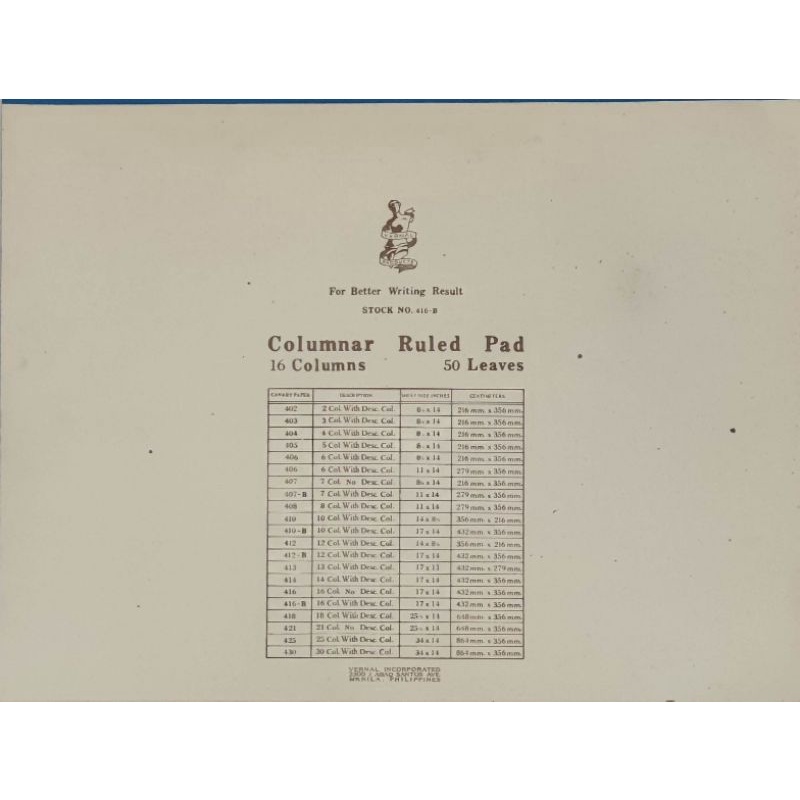 Vernal Products Columnar Ruled Pad 16 Columns 50 leaves