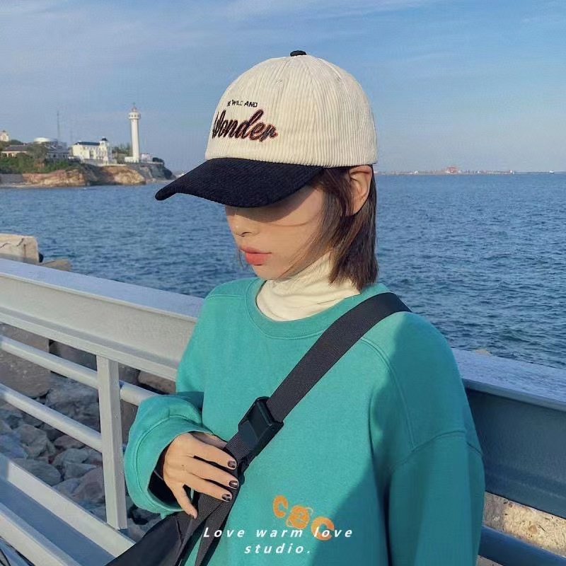 Versatile Colorblock Corduroy Cap Couple Student Baseball Cap