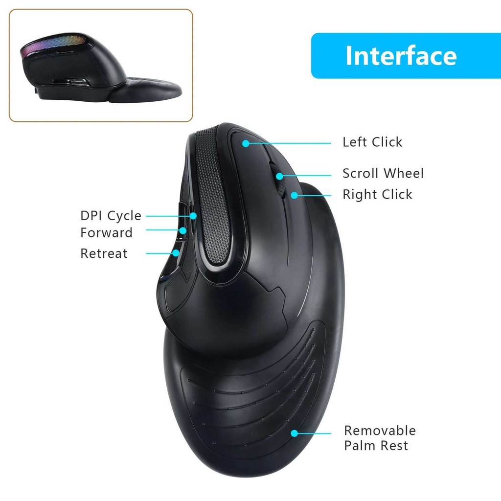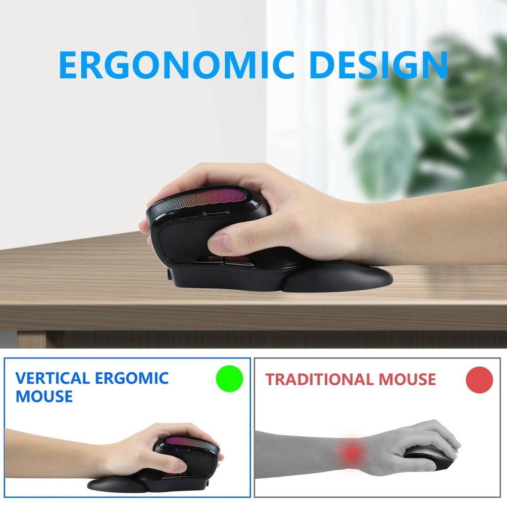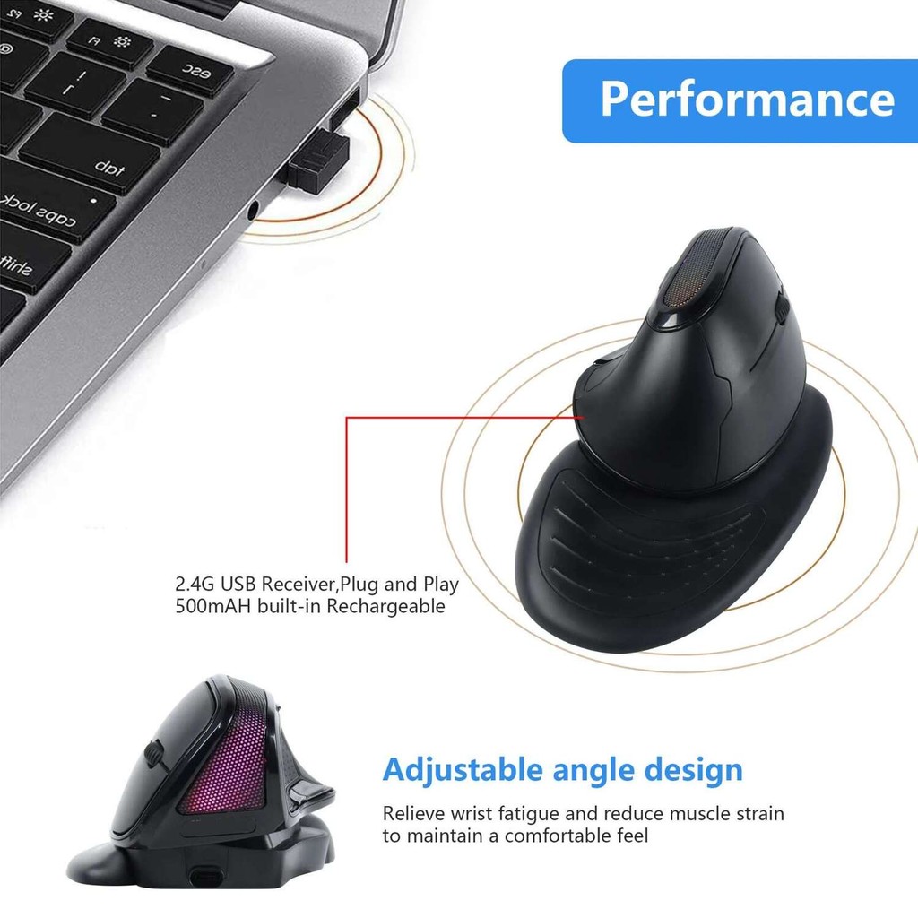 Vertical Ergonomic Wireless e Adjustable Angle Colored Lights Rechargeable Computer Gaming RGB Mice