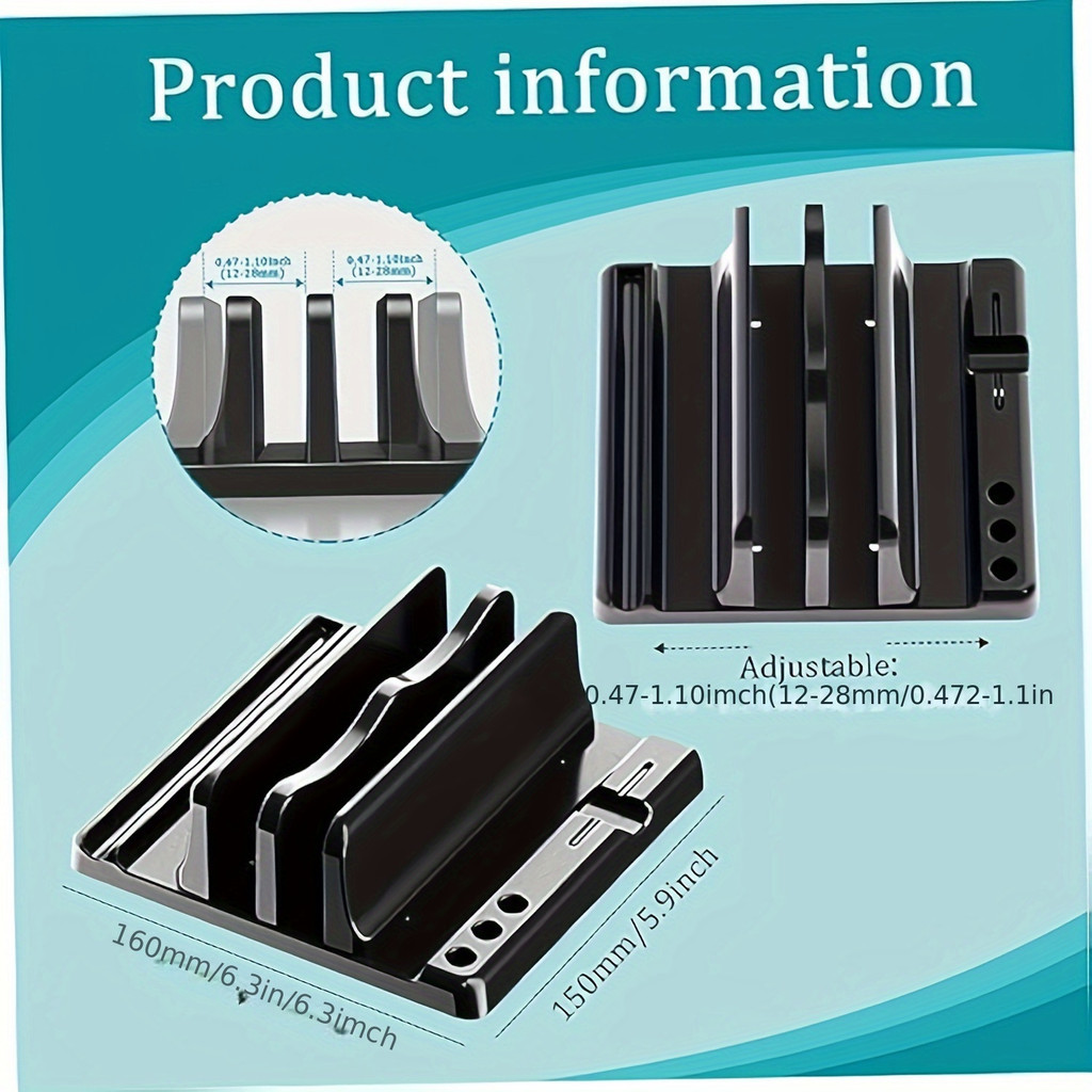 Vertical Laptop Stand for Desk, Dual Slots Plastic Laptop Holder with Space Saving 4-in-1 Design, Adjustable Laptop Stand Supports MacBook, Chromebook, Surface, Dell