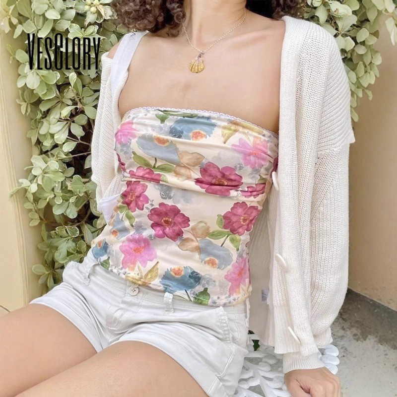 VesGlory Women Tube Top 2025 Print Off Shoulder Sleeveless Fashion Daily Casual Slim Fit Outdoor Streetwear All Match