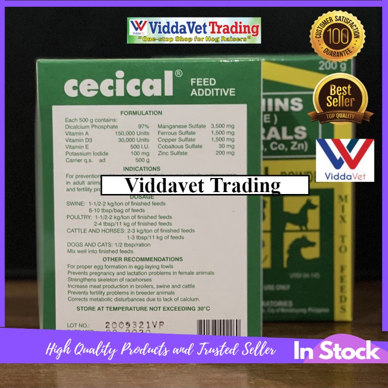 Viddavet Cecical Powder Vitamins + Minerals Feed Additive 200 Grams Cecical feed mix powder for pig