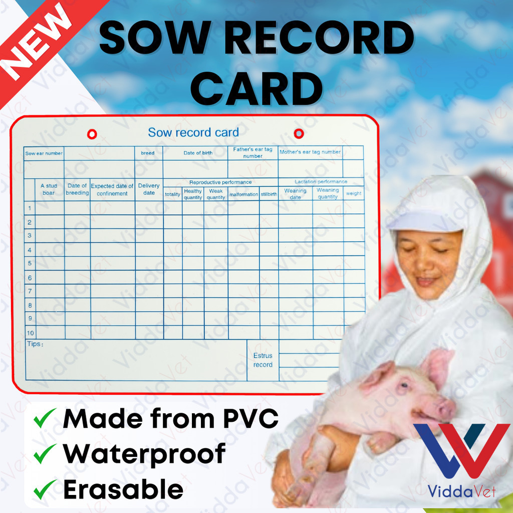 Viddavet SOW RECORD CARD PVC PIGGERY RECORD KEEPING for animals livestock