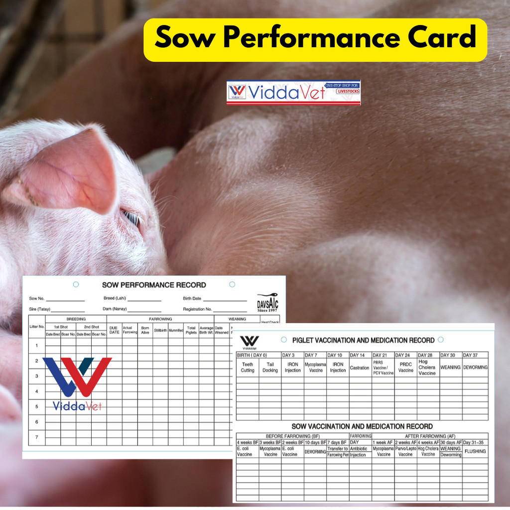 Viddavet Sow Performance Card PVC material Durable Health record Piglet Vaccination record SPR big