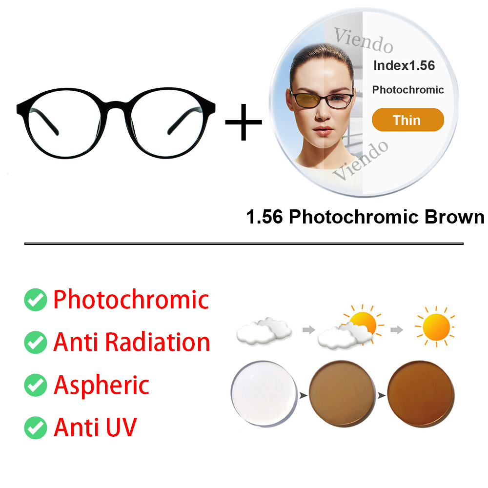 Viendo Graded Glasses Photochromic Myopic Eyeglasses For Women Men Transition Glasses Replaceable Lens Glasses Frames Transitional With/Without Astigmatism Index 1.56 Prescription Lens