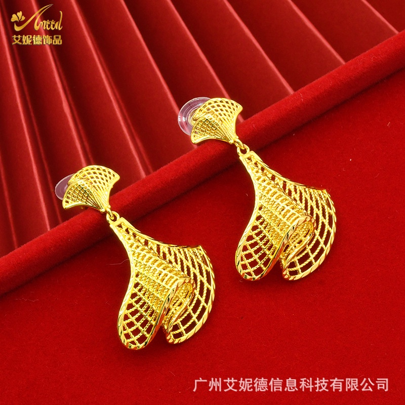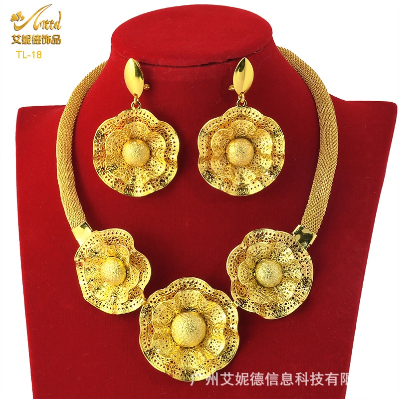 Vietnam sand gold women's suit brass gold-plated flower necklace earrings hollow-out carved jewelry
