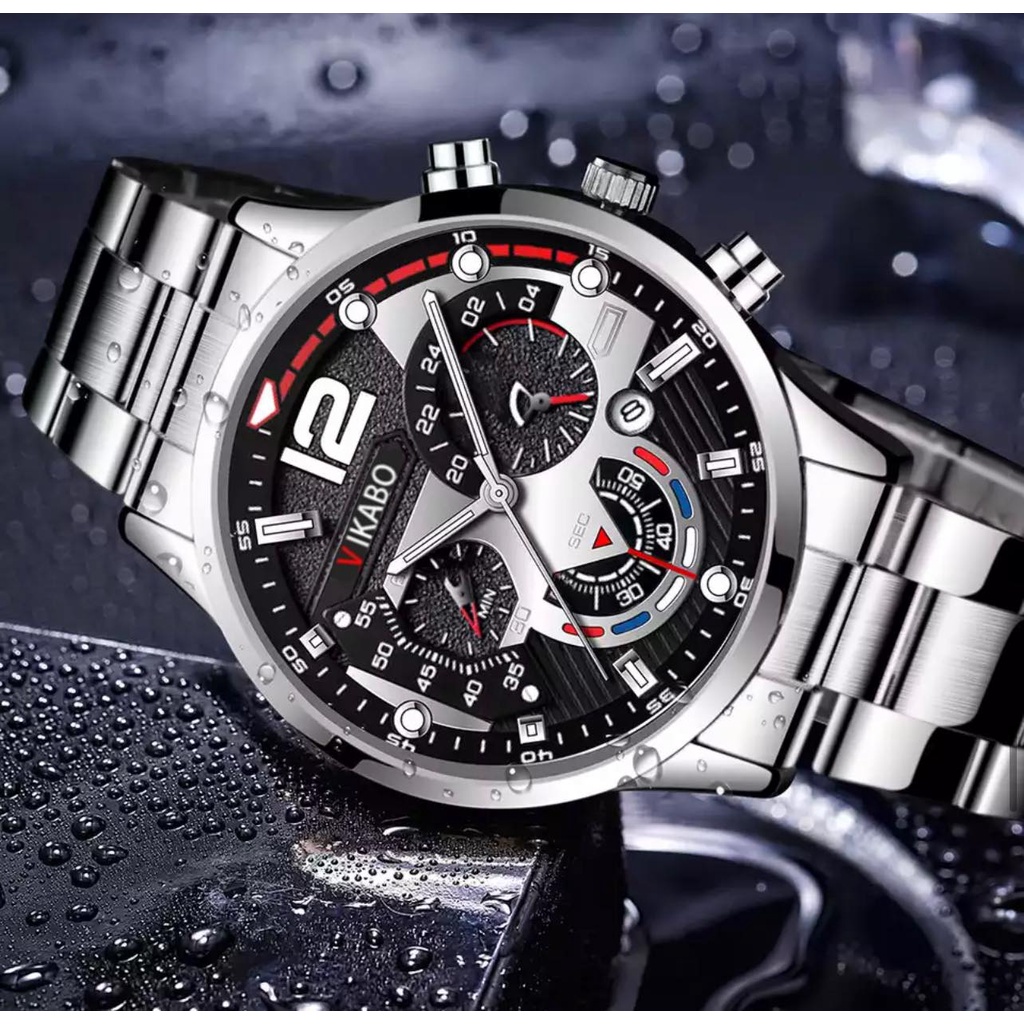 Vikabo Stainless Steel Watch For Men Exquisite Luminous Quartz Watches With date Bracelet Relo W0226
