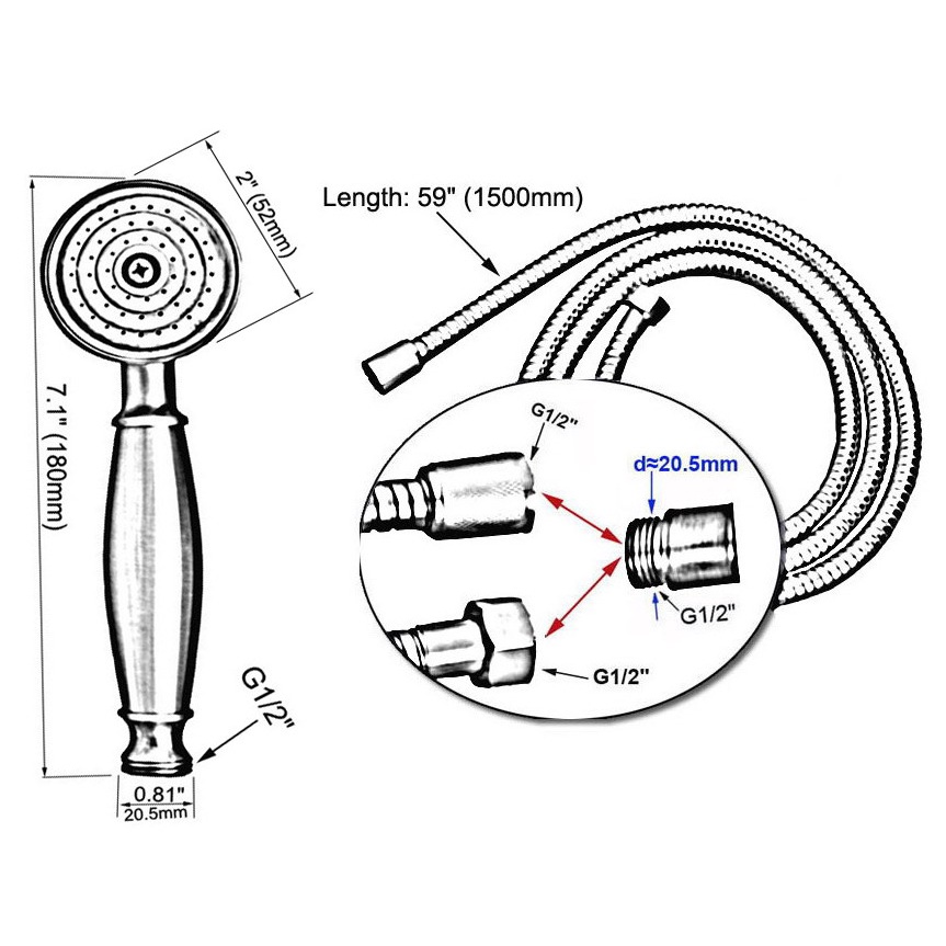 Vintage Antique Retro Brass Hotel Bathroom Kit Handheld Shower Spray Head / 1.5m Shower Hose Set Telephone Style Uhh119
