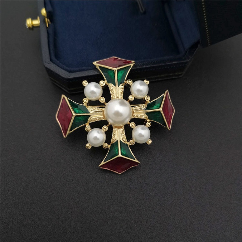 Vintage Baroque Enamel Pearl Brooches Retro Court Cross Brooch Pin for Women Jewelry Coat Accesories Men Suit Lapel Pins Corsage