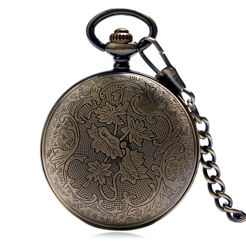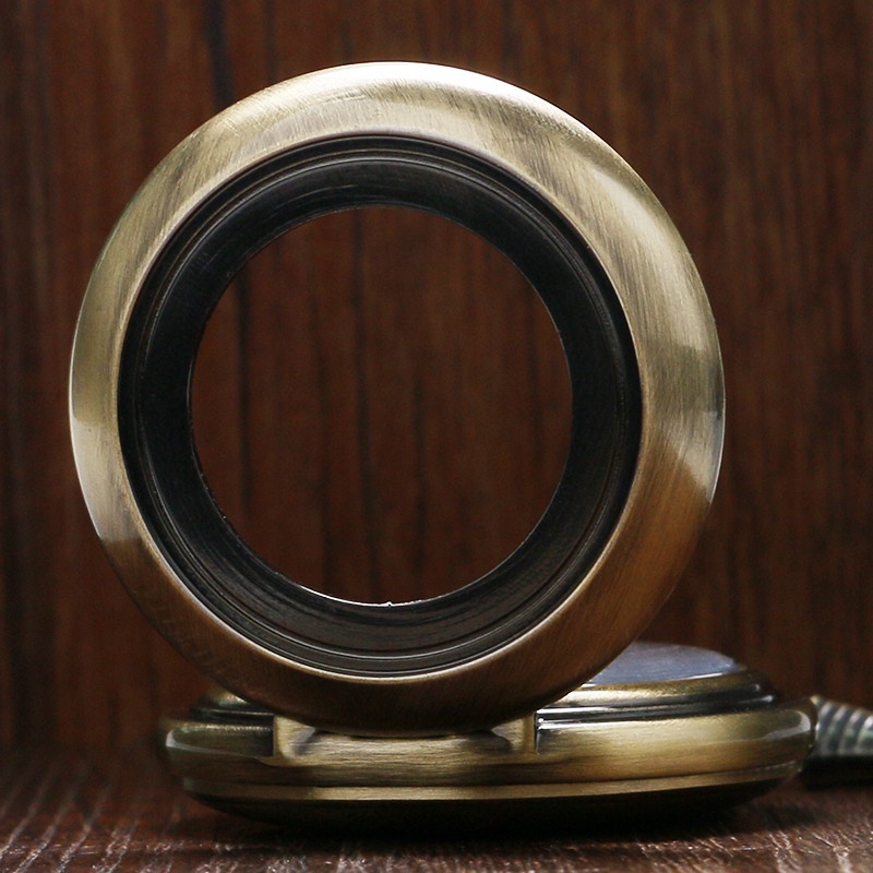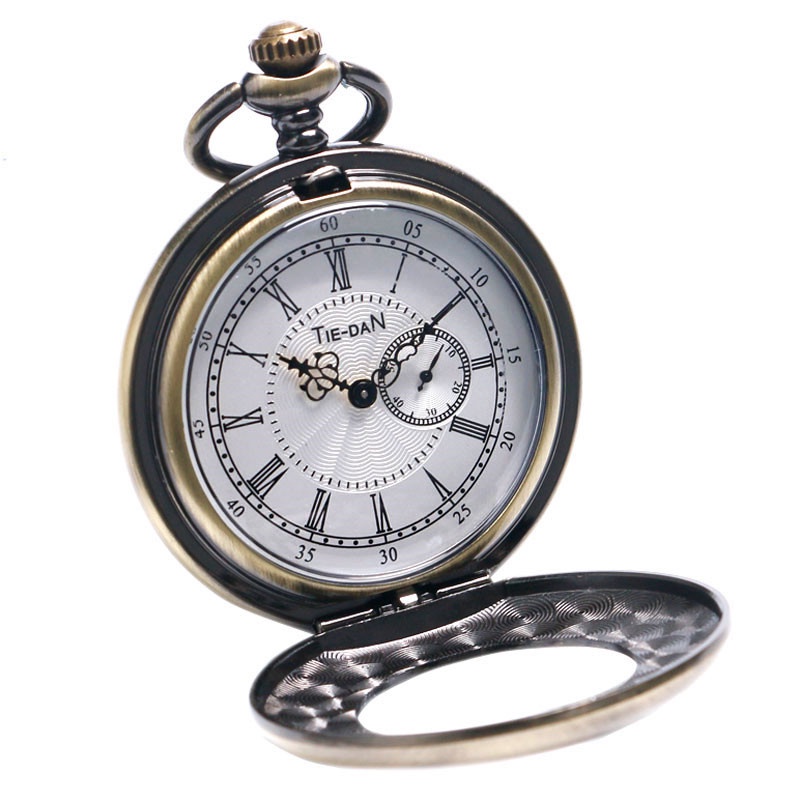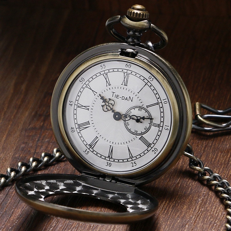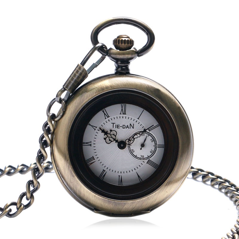 Vintage Bronze Round Small Second Hand Design Men Women Quartz Pocket Watch with Chain