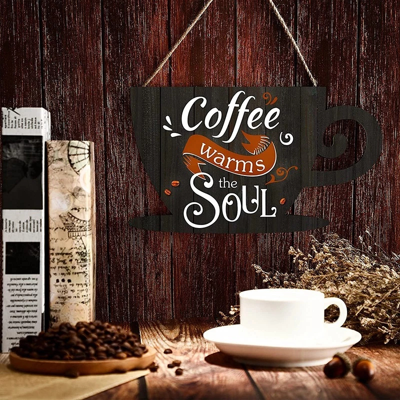 Vintage Coffee Inspirational Wood Wall Hanging Decor Wall Decor for Door Wall Accent