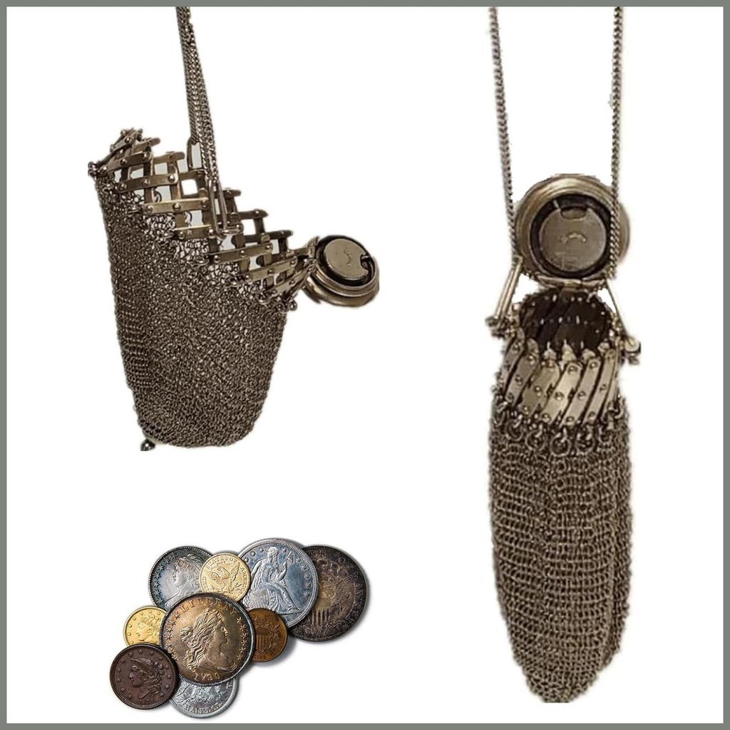 Vintage Coin Pouch Metal Collectible Coin Holders Medieval Coin Purse Handmade Double Mesh Pouch Small Vintage meilmph