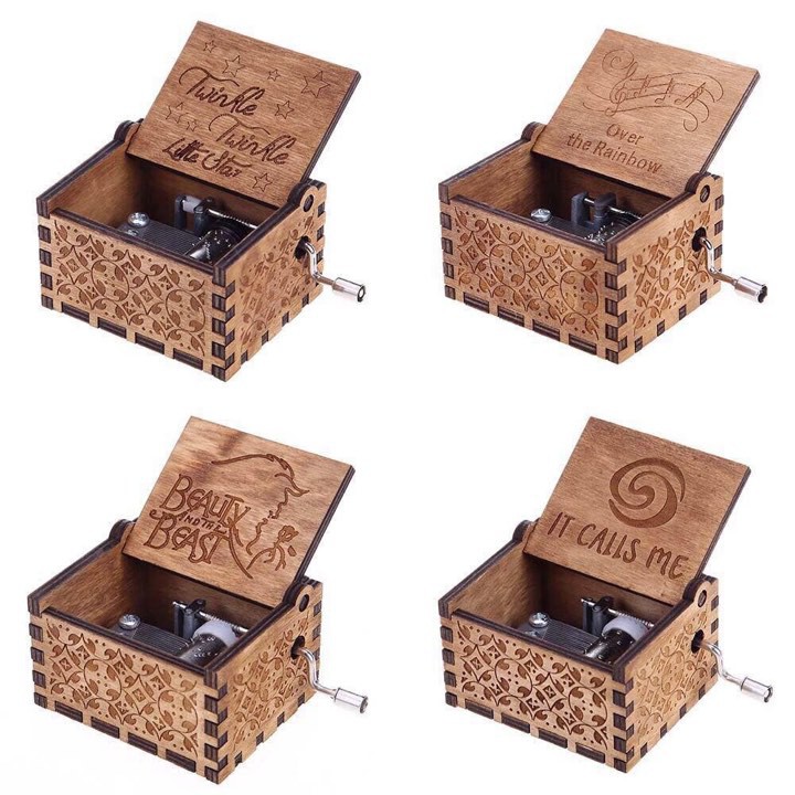 Vintage Engraved Wooden Mini Music Box Collection