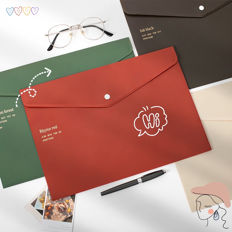 Vintage Envelope Folder/Waterproof PP File Folder/A4 Large Capacity Paper Clip Documents Storage Bag For School,Office