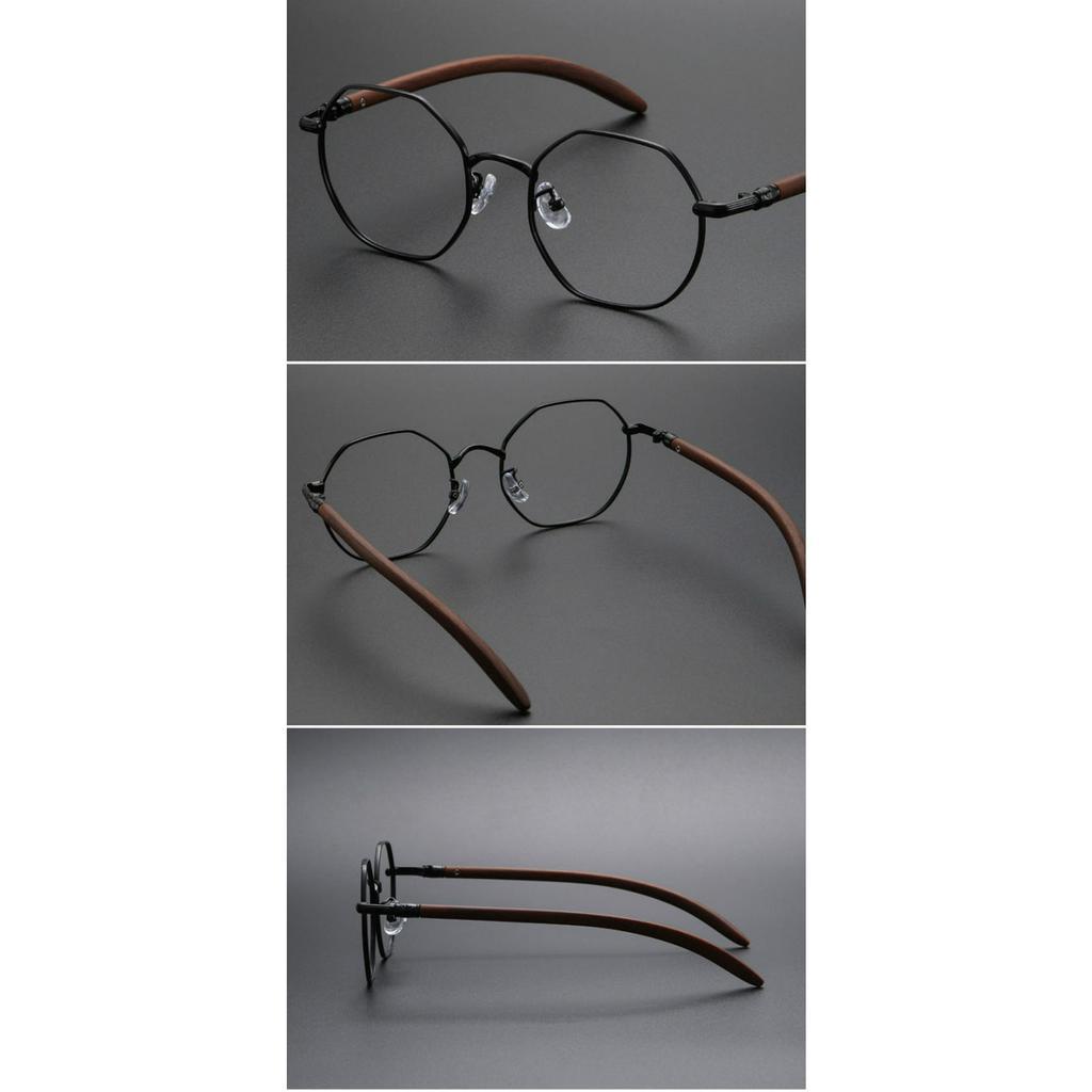 Vintage Polygonal Glasses Frame for Men Women Retro Wood Grain Legs Spectacle frame Large Face Eyeglasses 00101