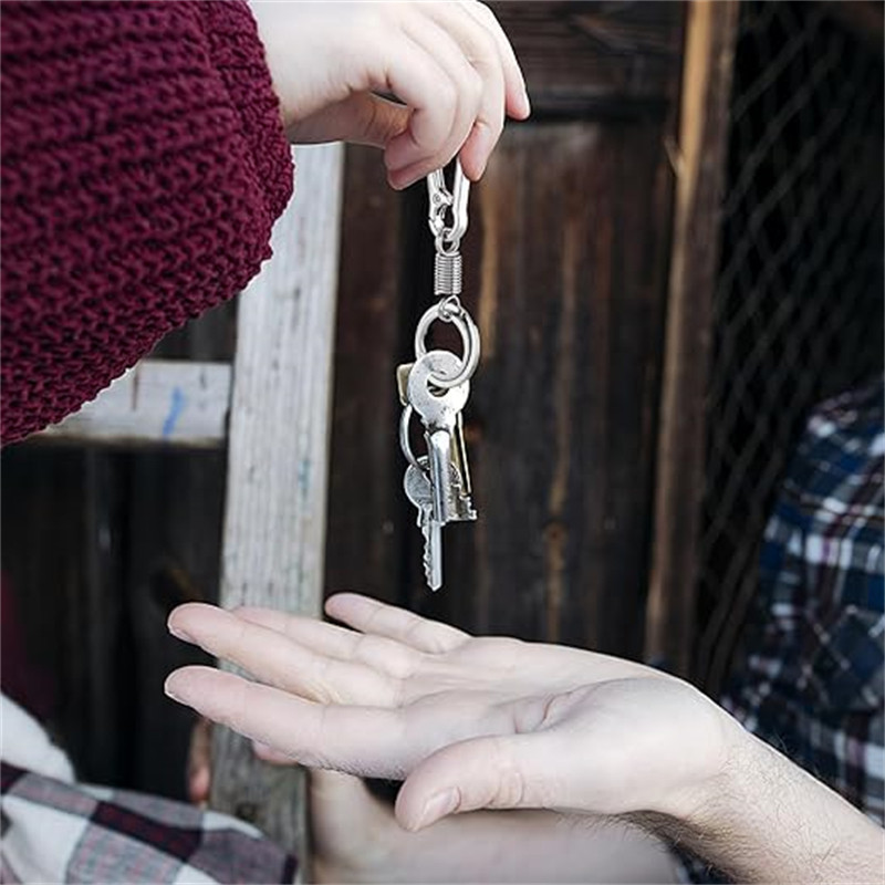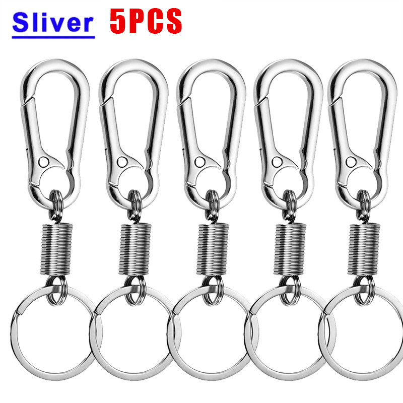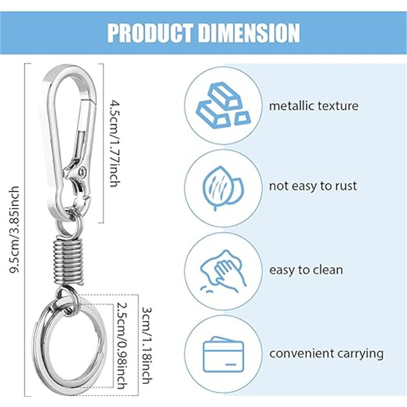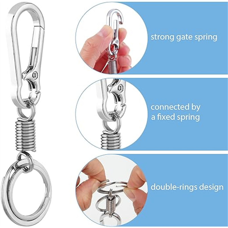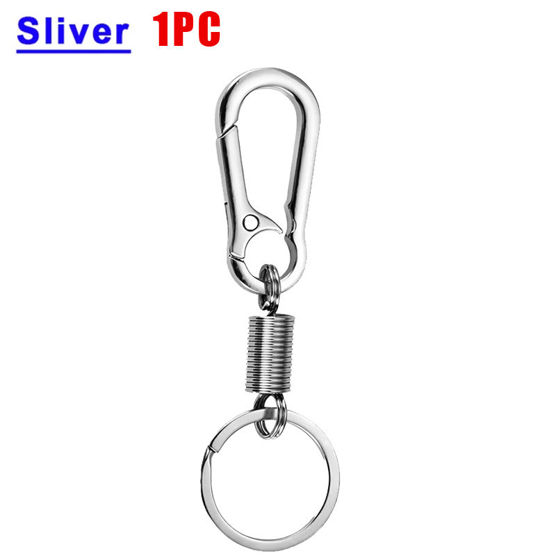 Vintage Waist Belt Spring Keychain - Outdoor Hiking Carabiner - DIY Fashion Silver Keyring - Retractable Metal Climbing Anti-lost Buckle