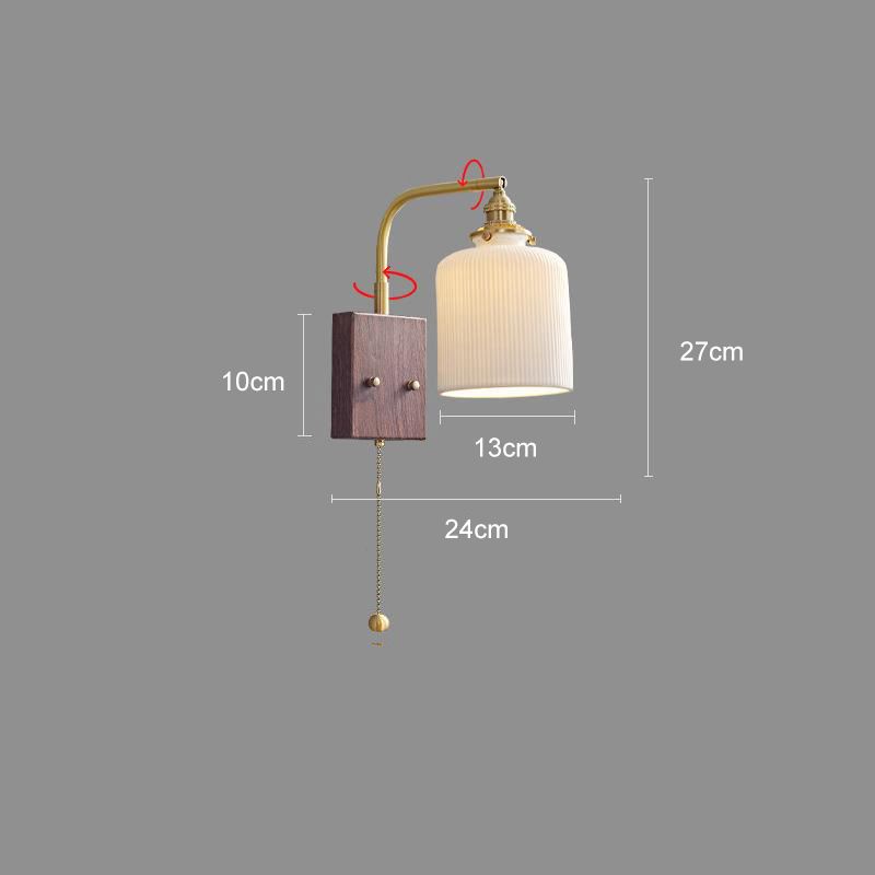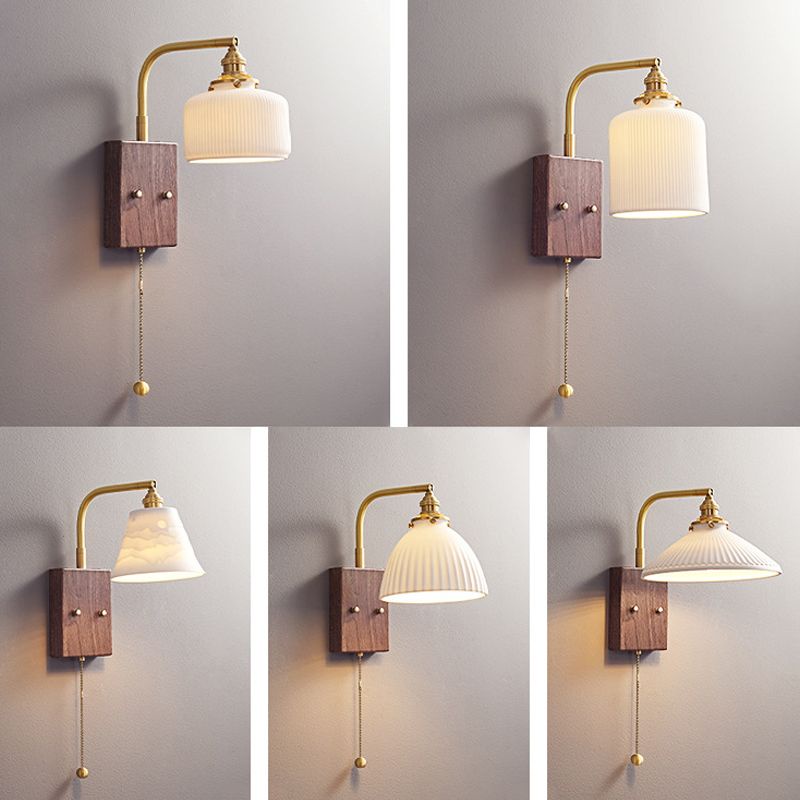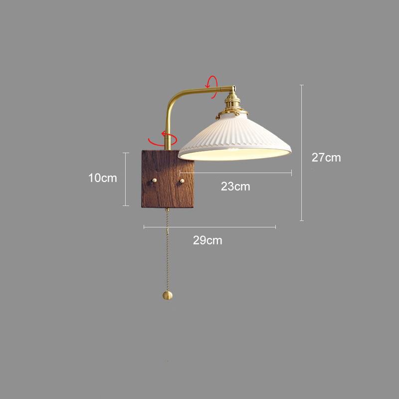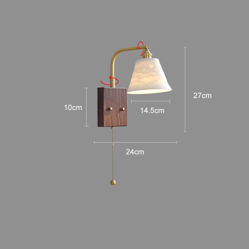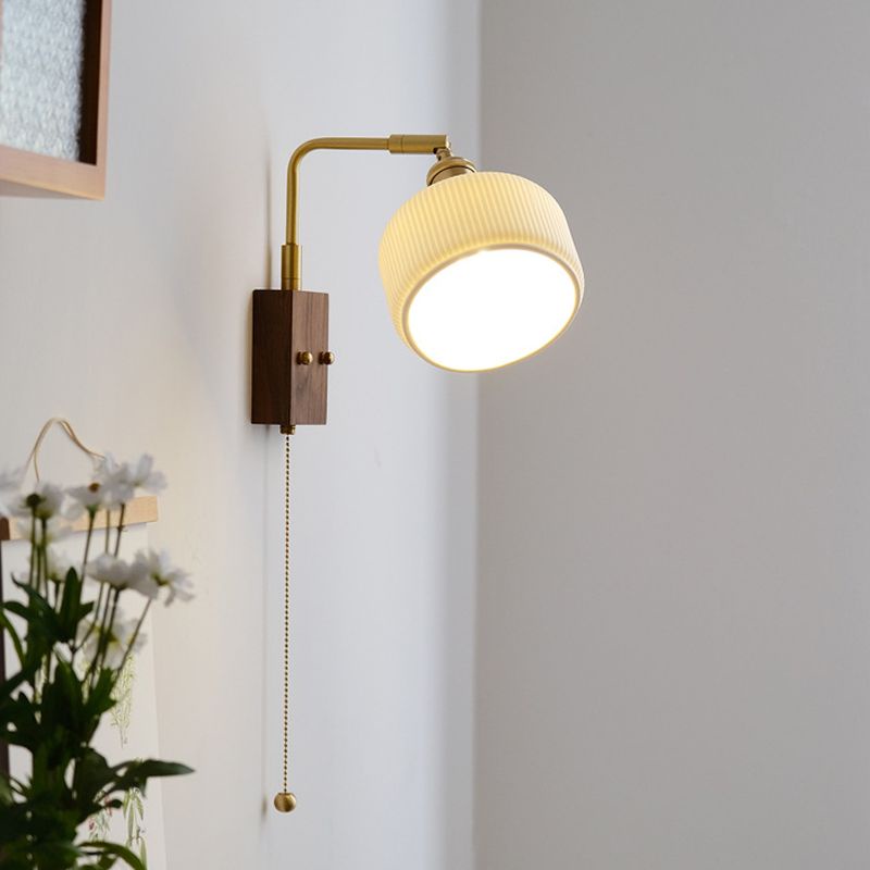 Vintage Wall Lamp, Walnut Ceramic Wall Sconce, Swing Wall Lighting With Pull Chain Switch, Aesthetic Japanese Wall Light For Bedroom, Living Room, Study, Hallway, Hotel