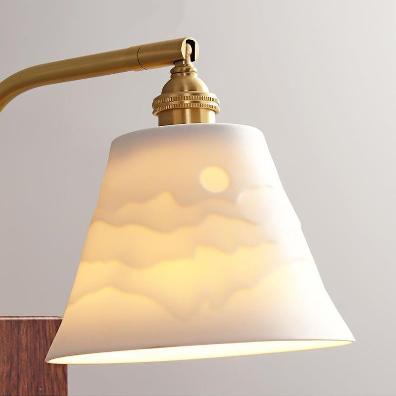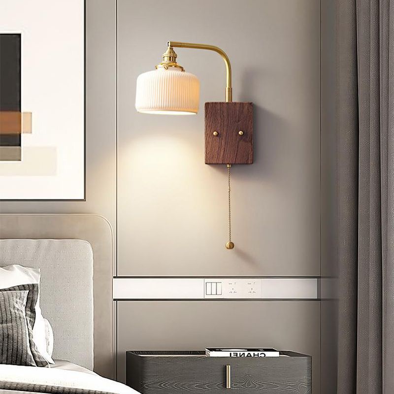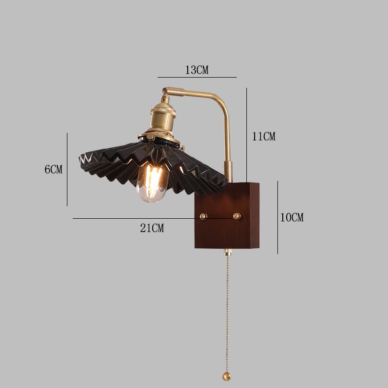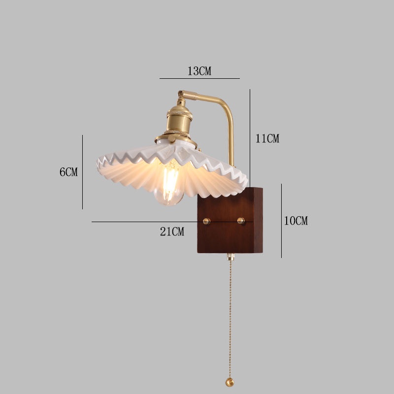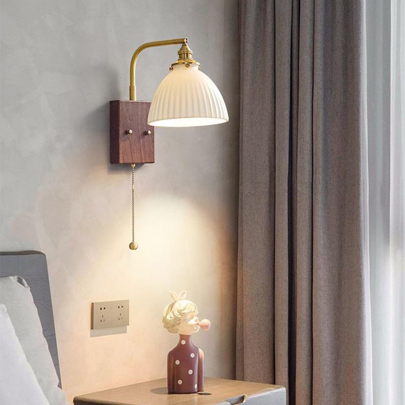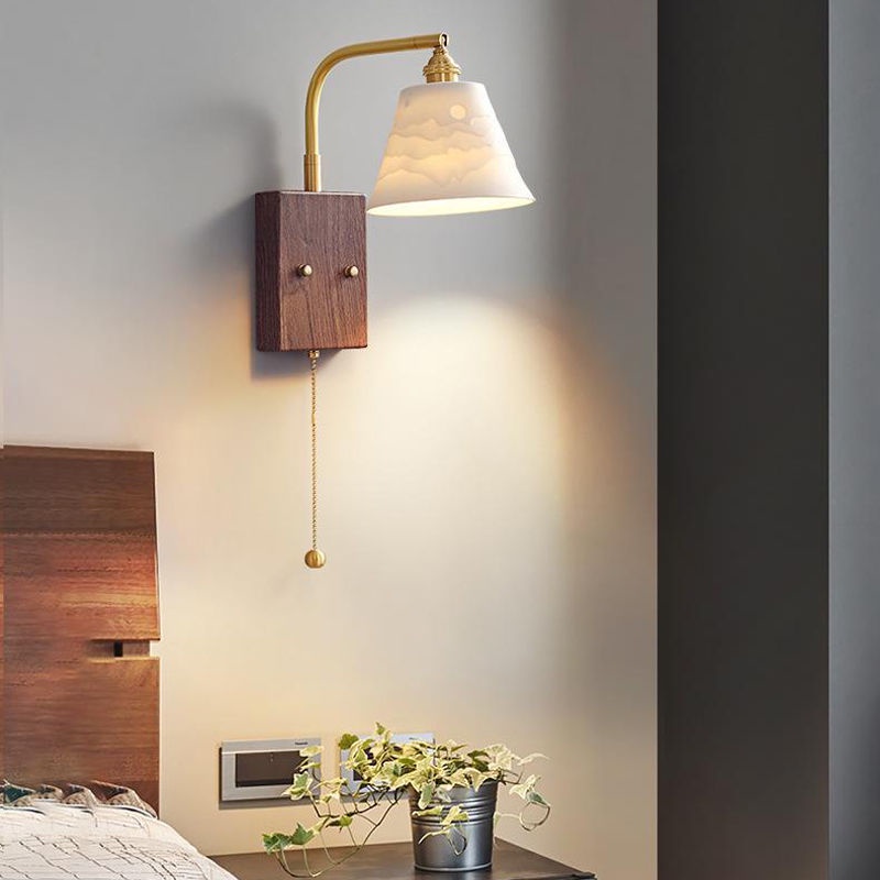 Vintage Wall Lamp, Walnut Ceramic Wall Sconce, Swing Wall Lighting With Pull Chain Switch, Aesthetic Japanese Wall Light For Bedroom, Living Room, Study, Hallway, Hotel
