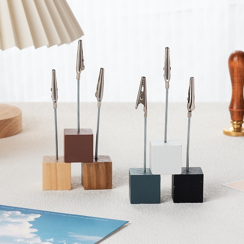 Vintage Wooden Memo Clips Creative Square Message Folder Iron Clips Photo Holder Desktop Postcard Note Paper Memo Pad Holder Desk Organizers