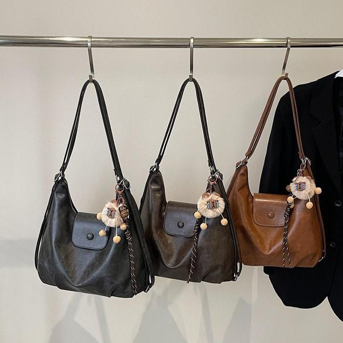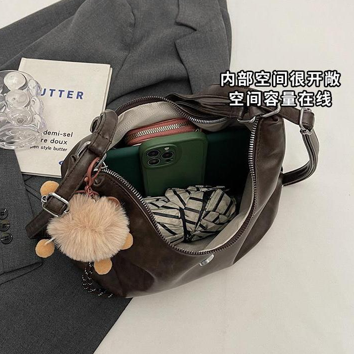 Vintage style large capacity PU leather shoulder bag Advanced texture shoulder multi-functional design large capacity side shoulder bag