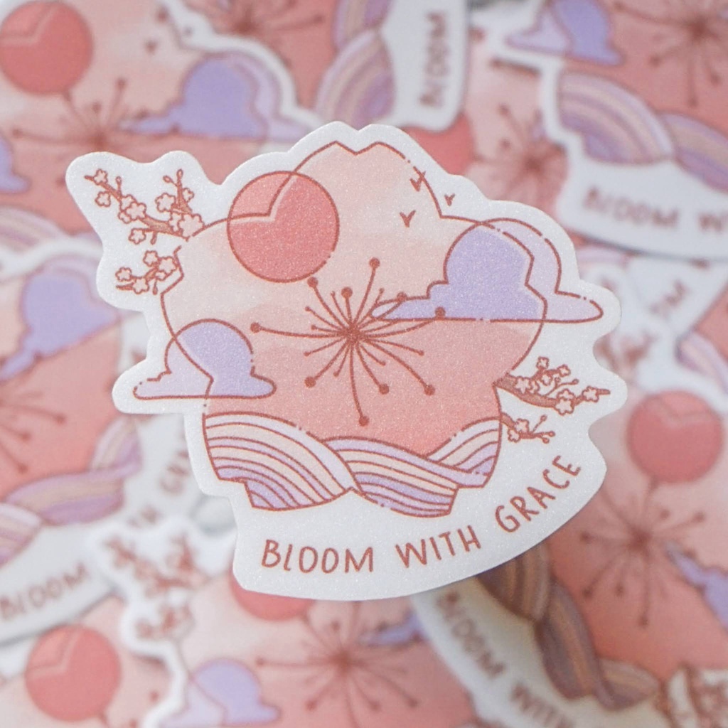 Vinyl Die cut Sticker | SAKURA | Journal Sticker | GLITTER waterproof sticker