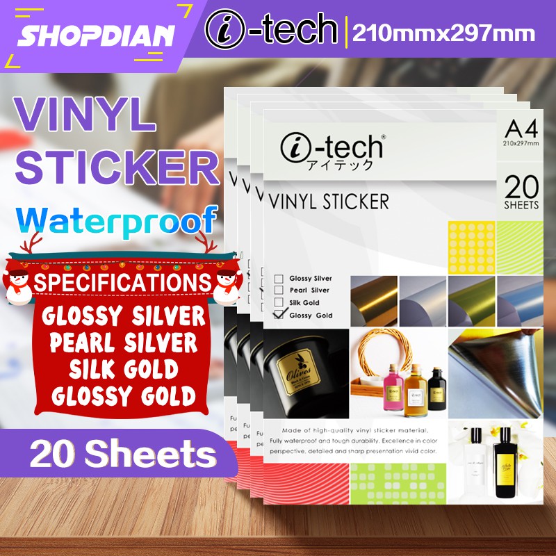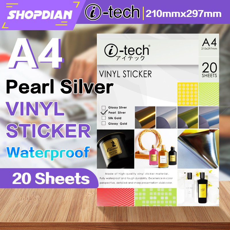 Vinyl Sticker Waterproof A4 Glossy Sliver / Pearl Sliver 20Sheets/Pack ITech Brand High Quality