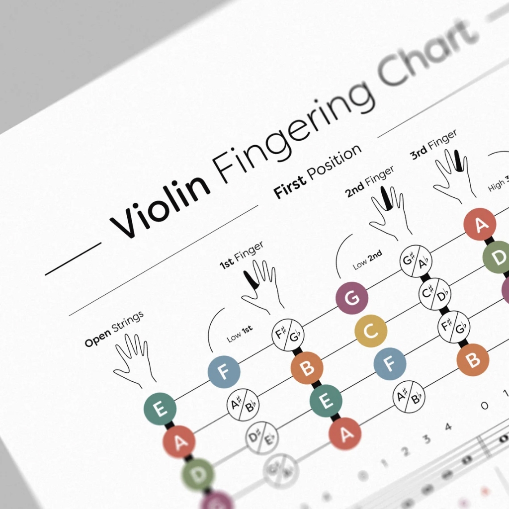 Violin Fingering Chart Poster - Violin Notation Position Poster