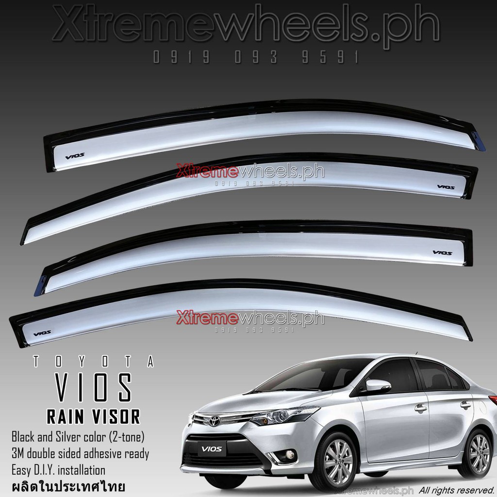 Toyota Vios 2018 to 2025 Thailand Made Window Rain Door Visor 2 tone Black Silver with Vios Logo 3d