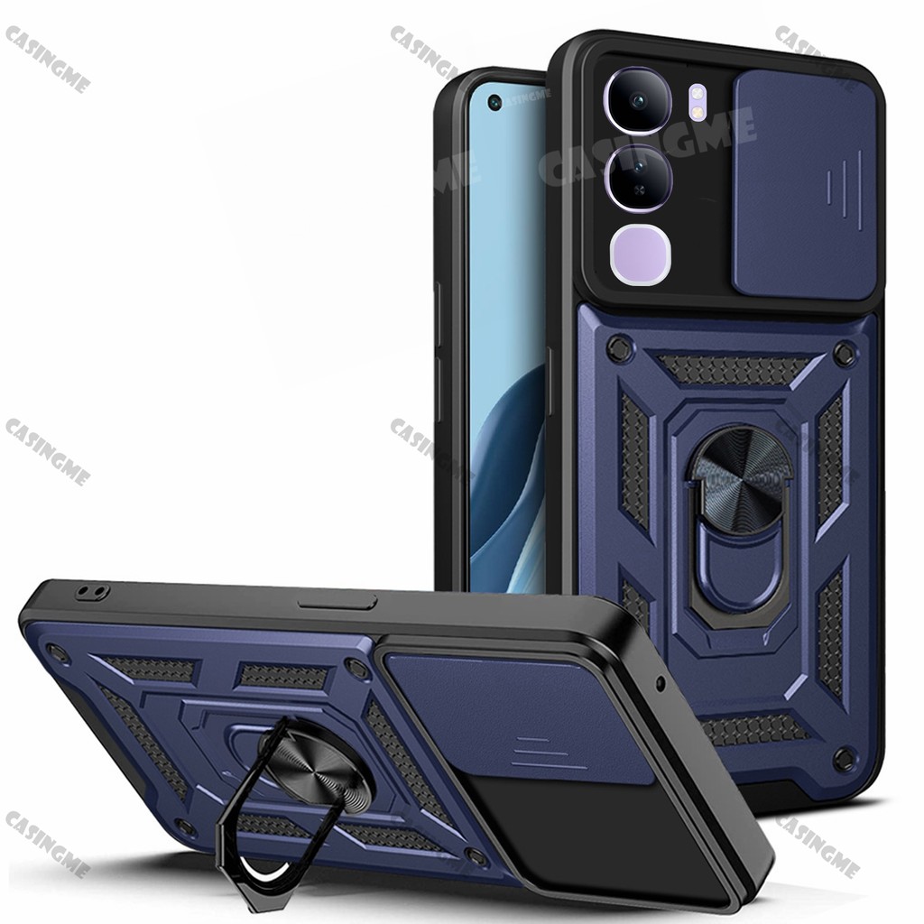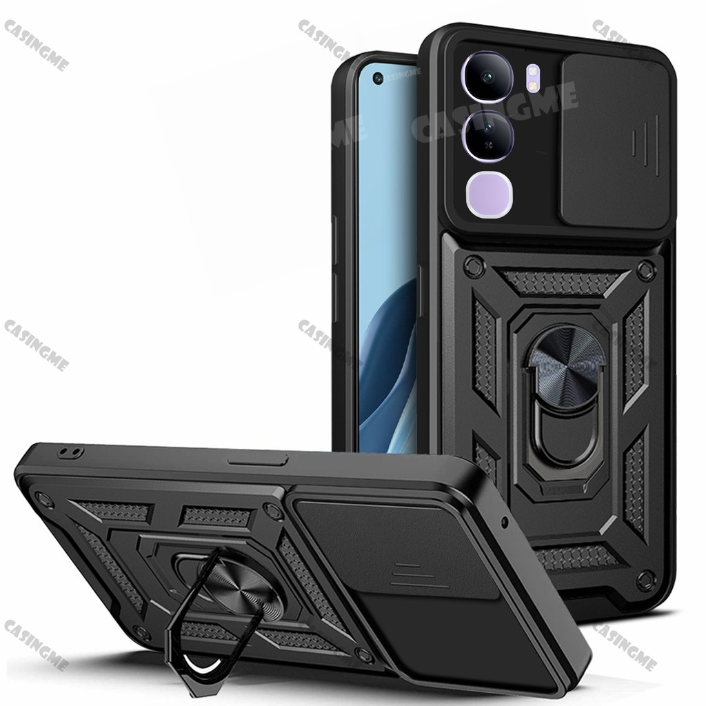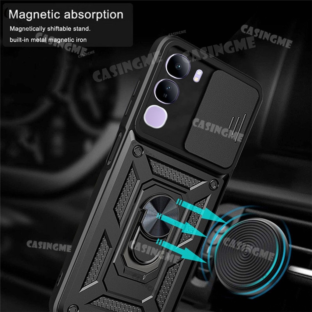Vivo V40 Lite 5G 2024 Shockproof Armor Casing For Vivo V40 Lite V40E V40Lite 4G 5G Car Magnetic Ring Stand Holder Push Pull Camera Protect Phone Case Shell Camera Back Cover