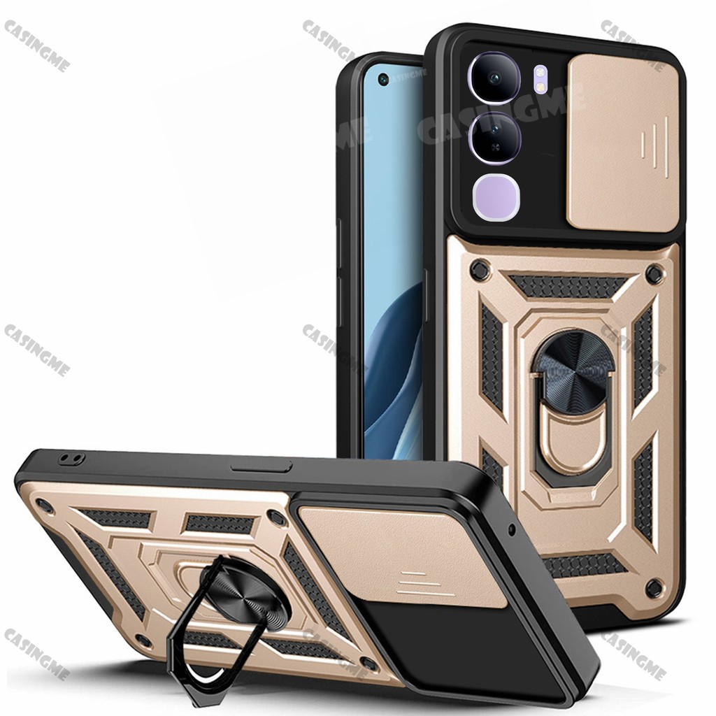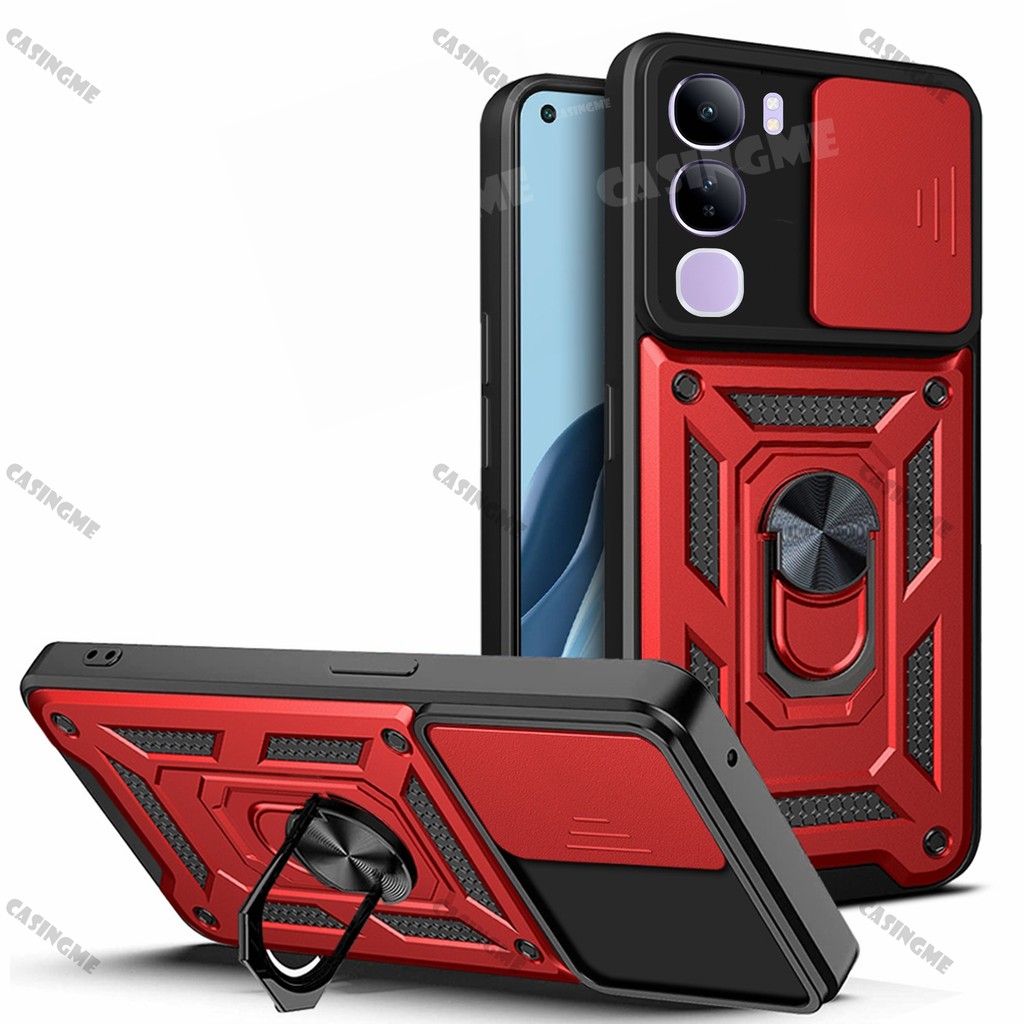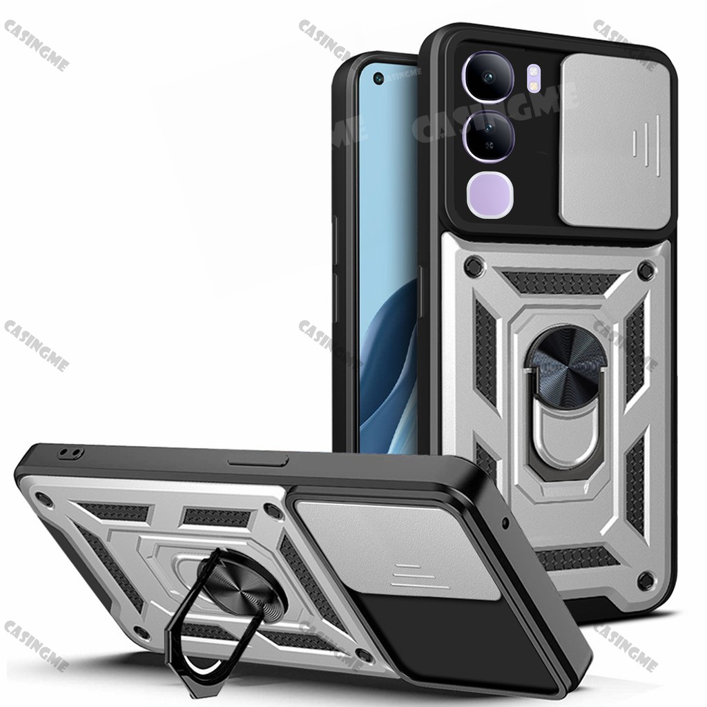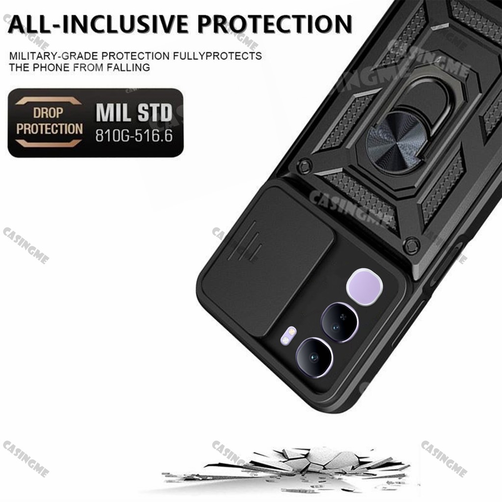 Vivo V40 Lite 5G 2024 Shockproof Armor Casing For Vivo V40 Lite V40E V40Lite 4G 5G Car Magnetic Ring Stand Holder Push Pull Camera Protect Phone Case Shell Camera Back Cover