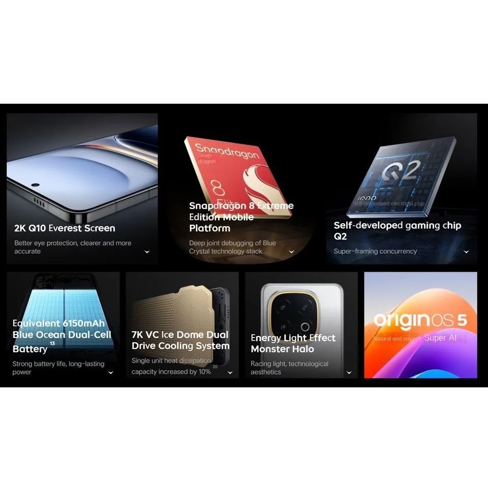 Vivo iQOO 13 5G Gaming Mobile Phone 6.82 inch AMOLED Snapdragon 8 Elite Octa Core 120W VOOC FlashCharge NFC