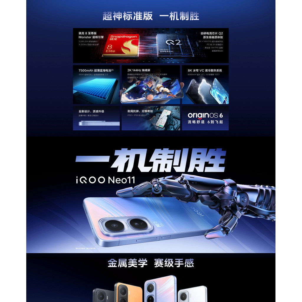 Vivo iQOO Neo 11 5G Smartphone 6.82 inches Snapdragon 8 Elite 3nm Bluetooth 5.4 NFC 7500mAh Support 100W FlashCharge