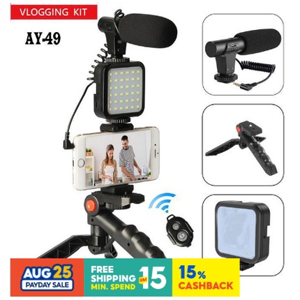 Vlogging Kit Video Making Kit Vlog with Mic Tripod Selfie Microphoe Fill Light Live Broadcast