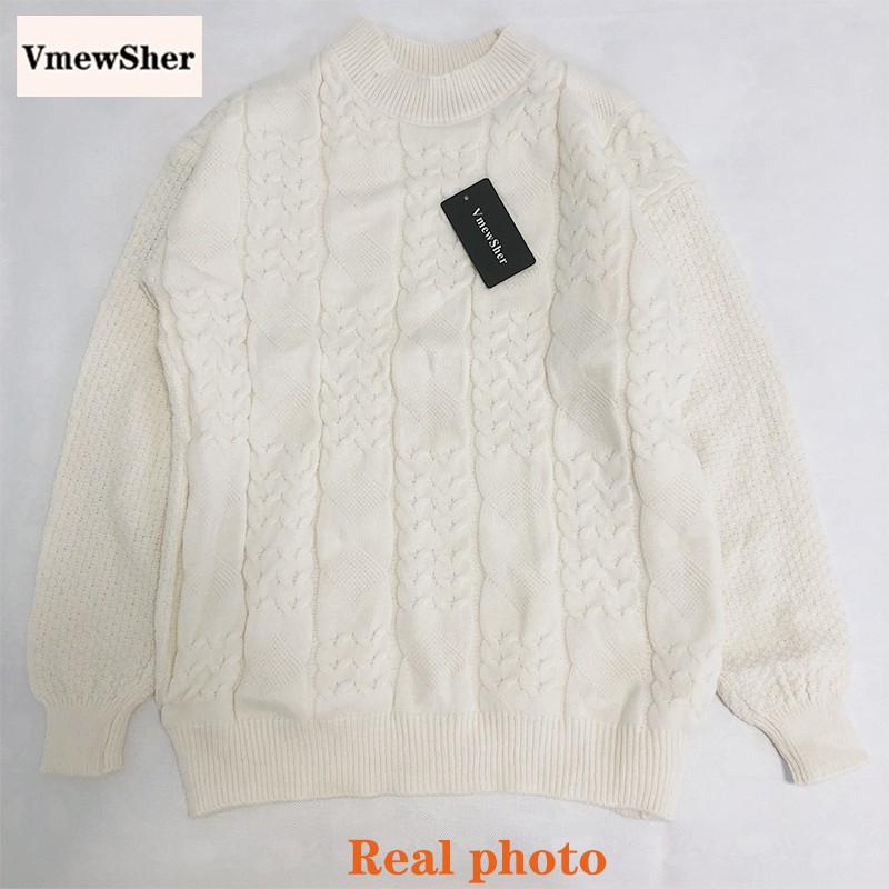 VmewSher New Preppy Style Autumn Winter Thick Solid Pullovers Oversized Warm O-Neck Knitted Sweater Women Jumper
