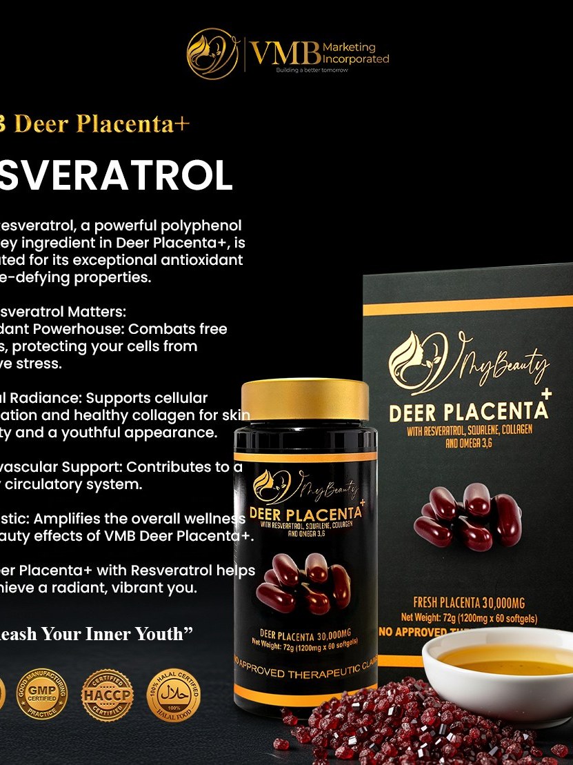 Vmy beauty deer placenta stem cell health supplement vmb deer placenta 30,000mg 30 softgels