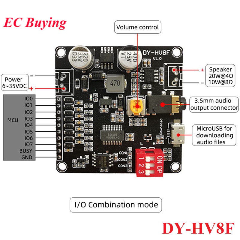 Voice Playback Module MP3 Music Player UART I/O Trigger Amplifier Board Module DY-SV17F DY-SV5W DY-SV8F DY-HV20T DY-HV8F