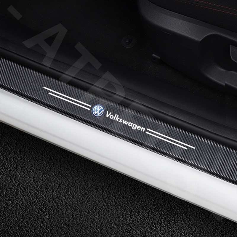 Volkswagen Car Door Sill Sticker Carbon Fiber Leather Protector Sticker Auto Threshold Anti Scratch For Volkswagen Beetle T Cross Santana Golf Mk7 VW Polo Lavida Lamando