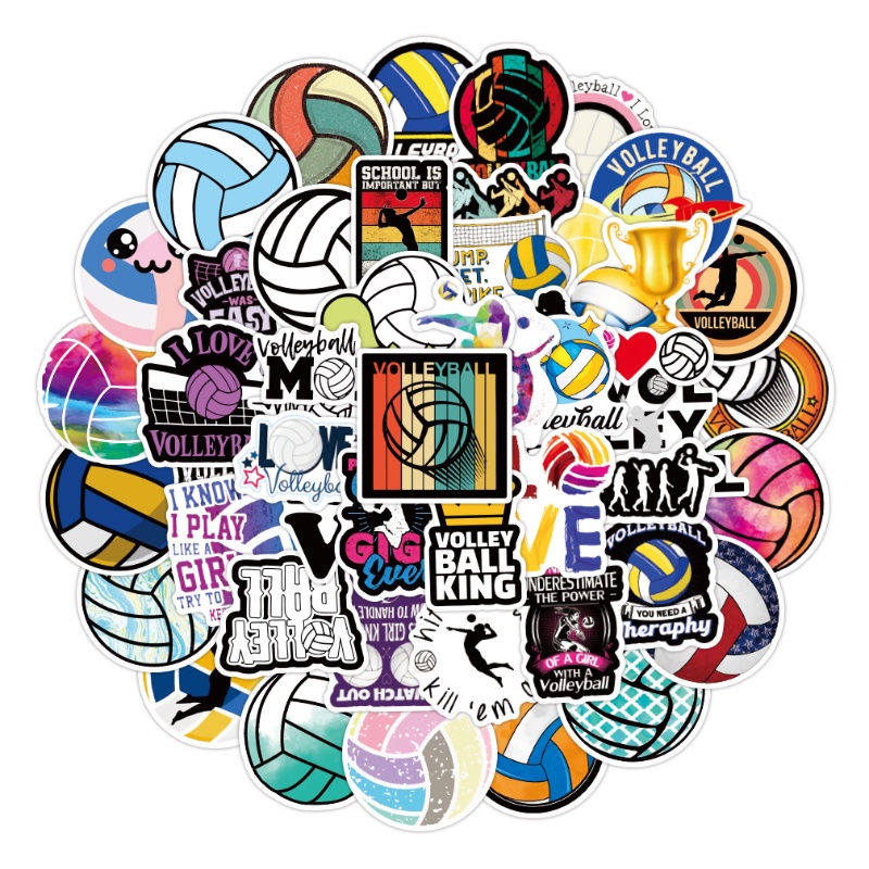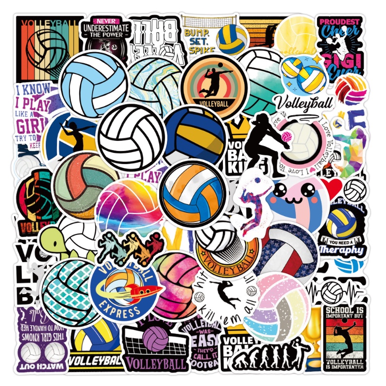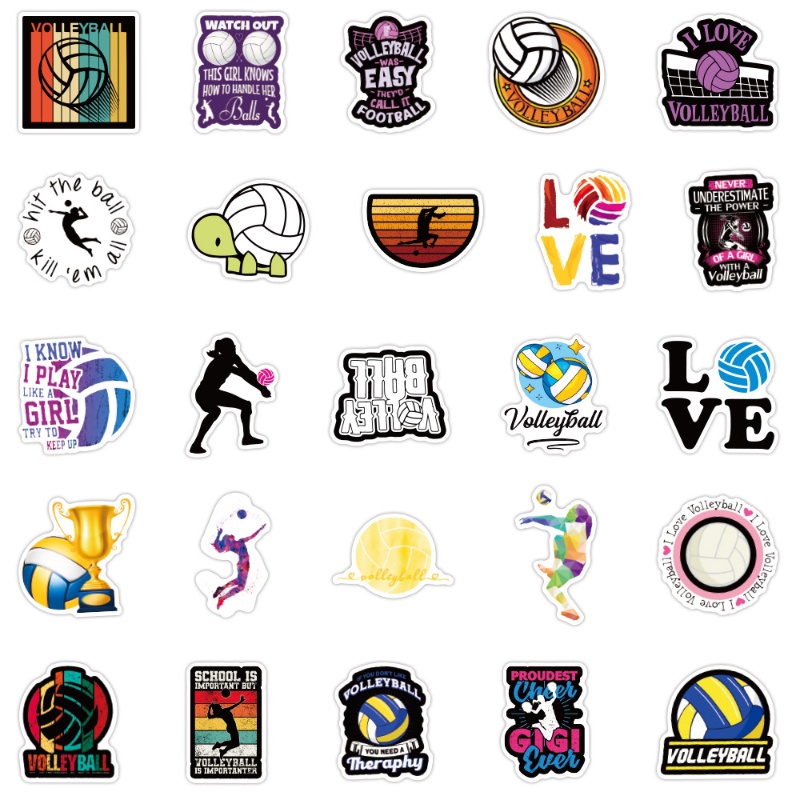 Volleyball Stickers 50Pcs Waterproof Volleyball Stickers for Water Bottle Vinyl Decals Laptop Luggage Cup
