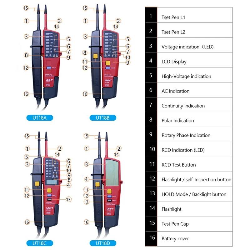 Voltage and Continuity Tester UT18C UT18D Waterproof Pencil, On-Off Test/RCD Test/Polarity Detection/Single-Pens Measurement